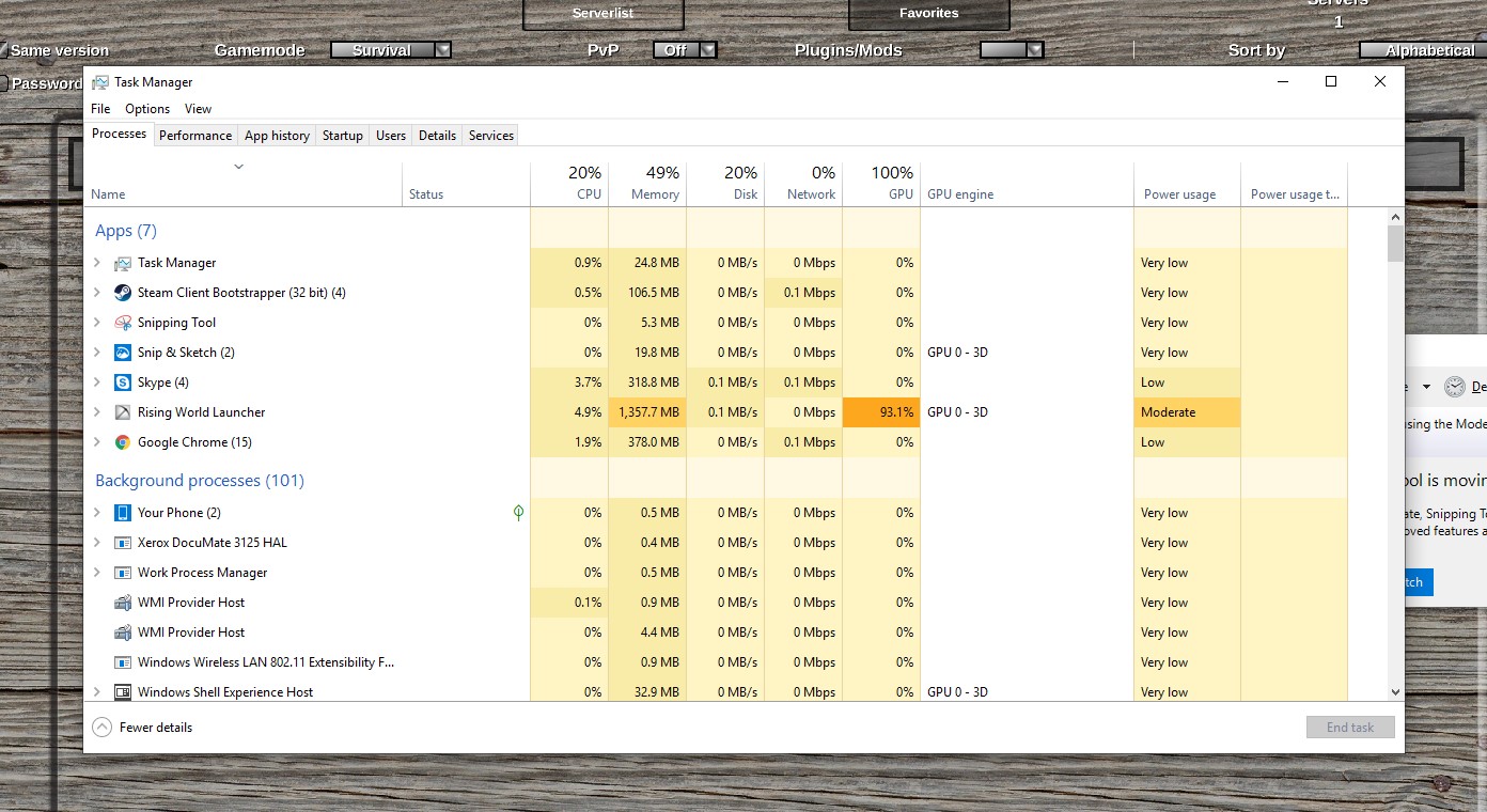 Okay this is what you can do to optimize your performance when playing Rising World first off you've got a lot of background apps you can turn off. To do this select the running task, right click and end task.