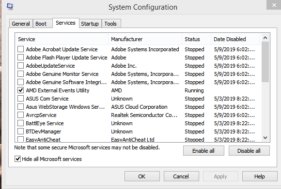 5. Your PhoneAfter this open up the command prompt in Admin mode - type msconfig and press enter. Now this will bring up your system configuration. Go to services and check the box [ Hide all Microsoft services]