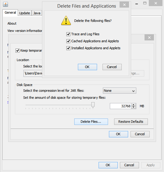 From here Open "Settings" and delete files make sure to click the box "Installed Applications and Applets"