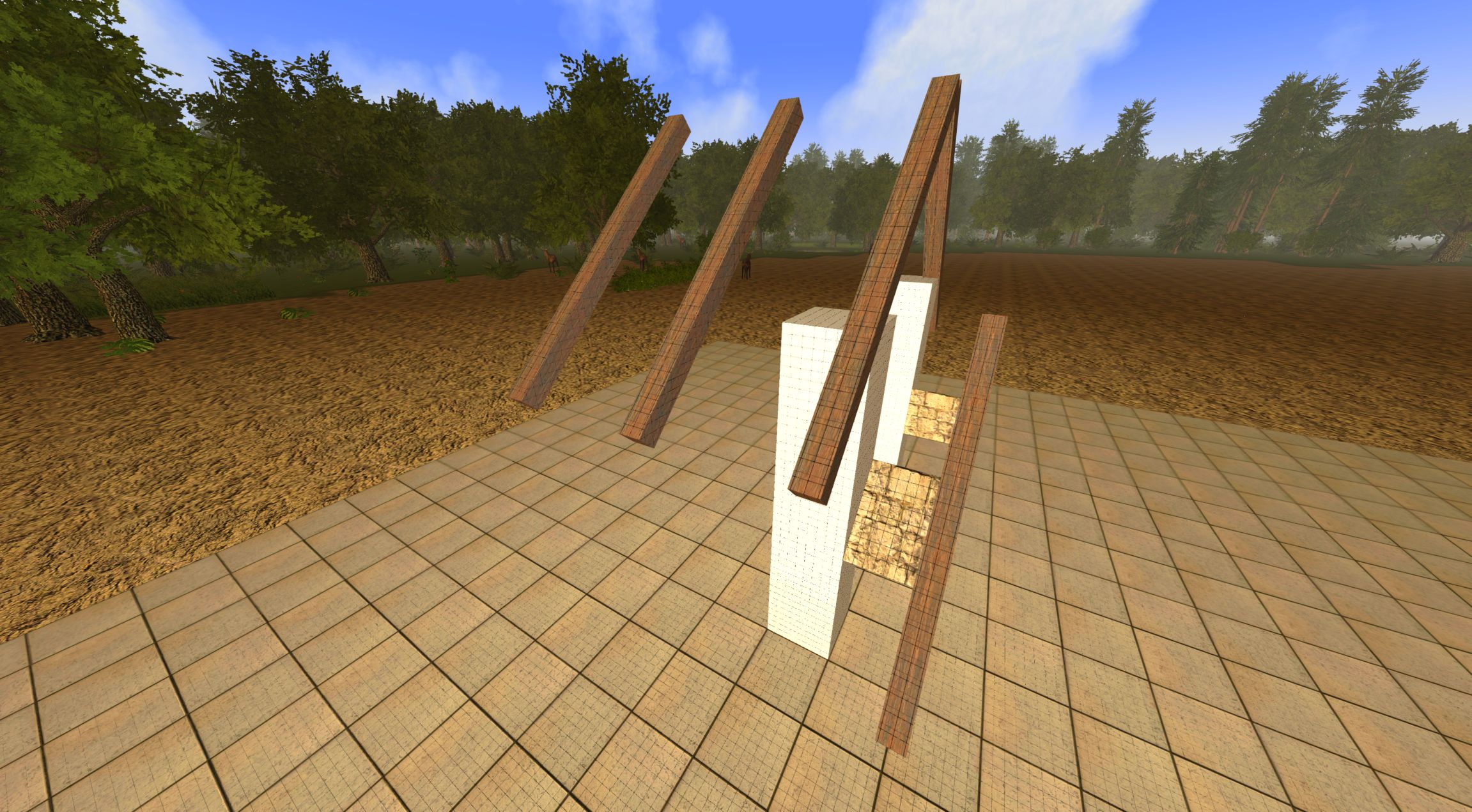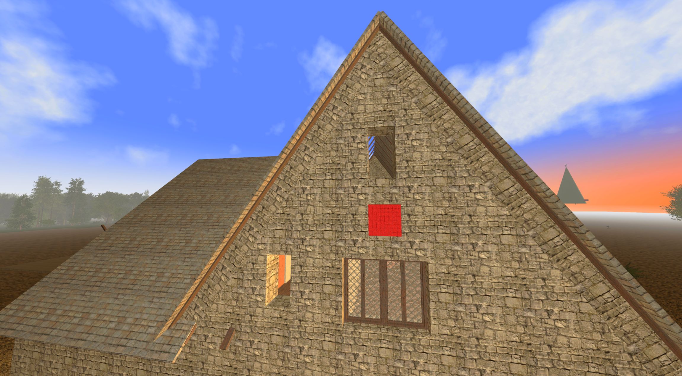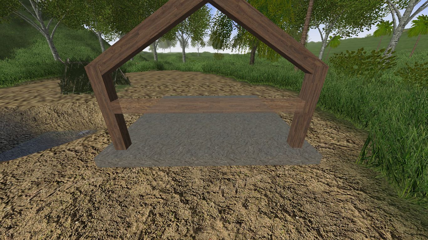 - Now to fill in the Triangle space. take a wood plank and narrow it so it is similar to the width of what a 2x4 width would look like. The reason for this is we are going to hide the ends of these planks into the sloped beams that form the roof angle. Now position this plank at the bottom of the triangle and resize the length of the blank so it is shorter than the distance between the 2 sloped planks that form the roof. When you are happy with it hit the CTRL key to lock it into place.