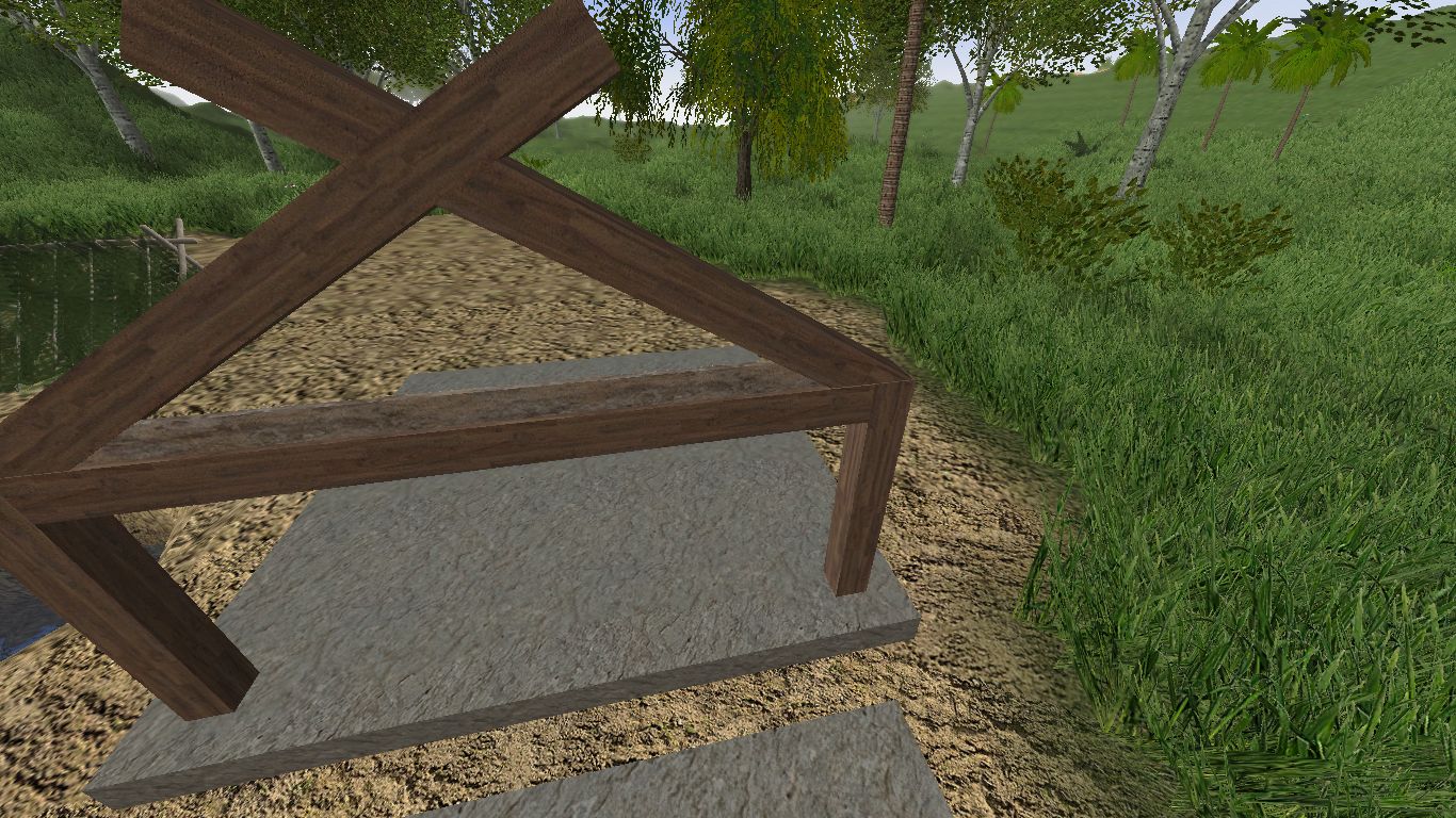 - take a beam of your choice and shorten it so you won't need scaffolding to build the roof.