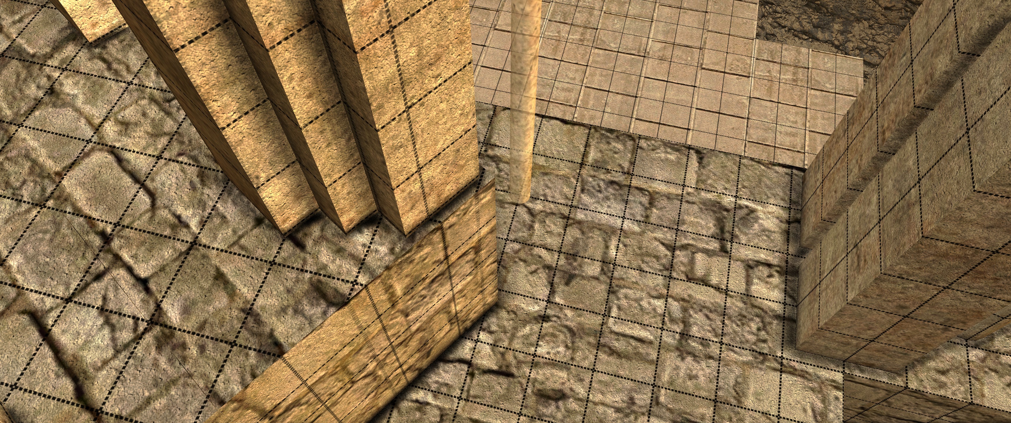 Das globale Raster ist ganz klar nach Nord,Süd,Ost,West ausgerichtet, dadurch lassen sich Gebäudeelemente in eben jener Ausrichtung gut auf anderen platzieren mit gleicher Ausrichtung, da ja das Raster plan aufliegt.