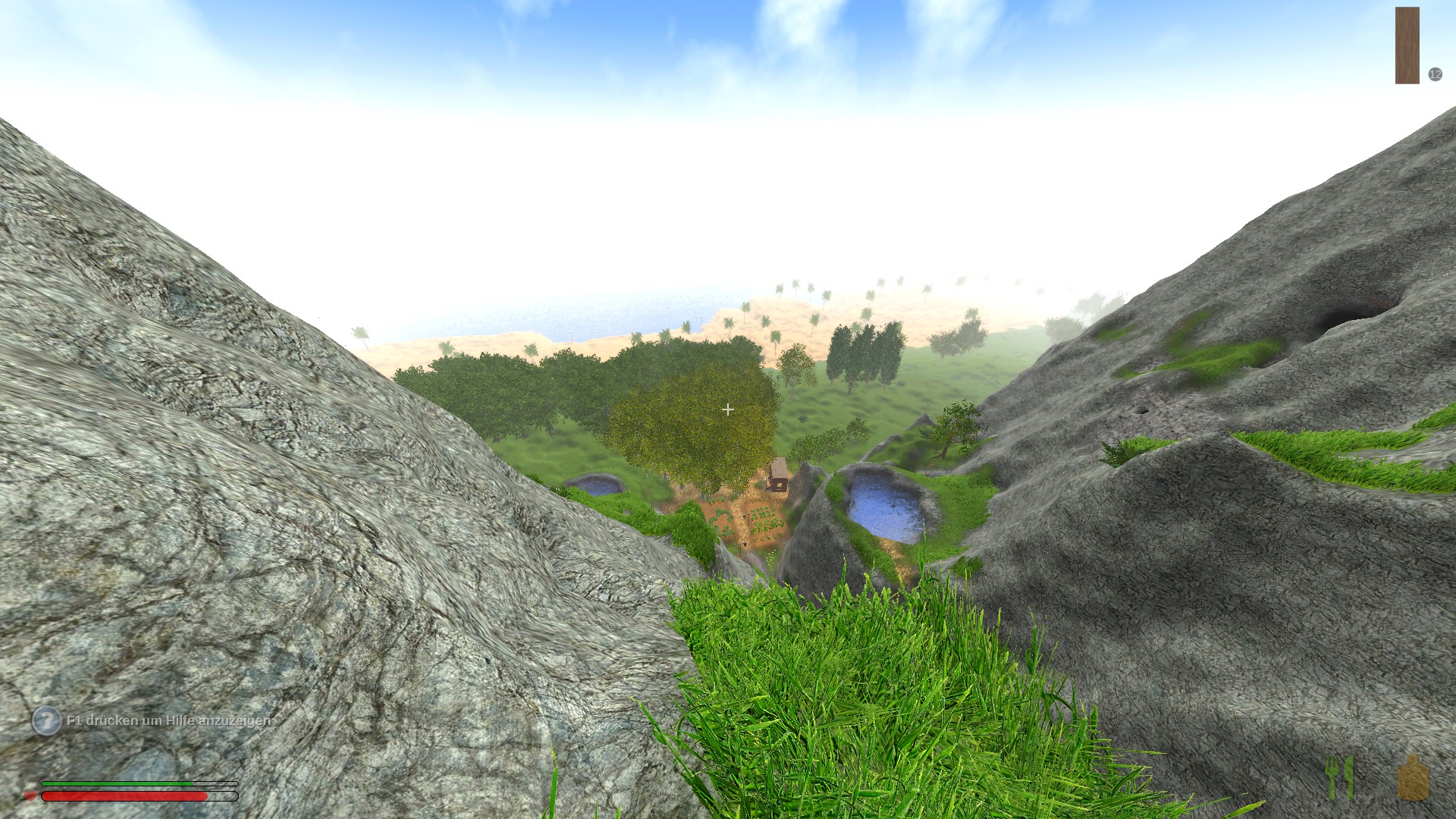 Im tal kommt gleich nach einem schmalen landstreifen der Strand. Dort pflanze ich einen dichten Wald, kurz vor dem Strand noch die Savannenbäume und den Strand habe ich auch ebener gestaltet. All das um vom Berg aus einen schönen Ausblick zu haben