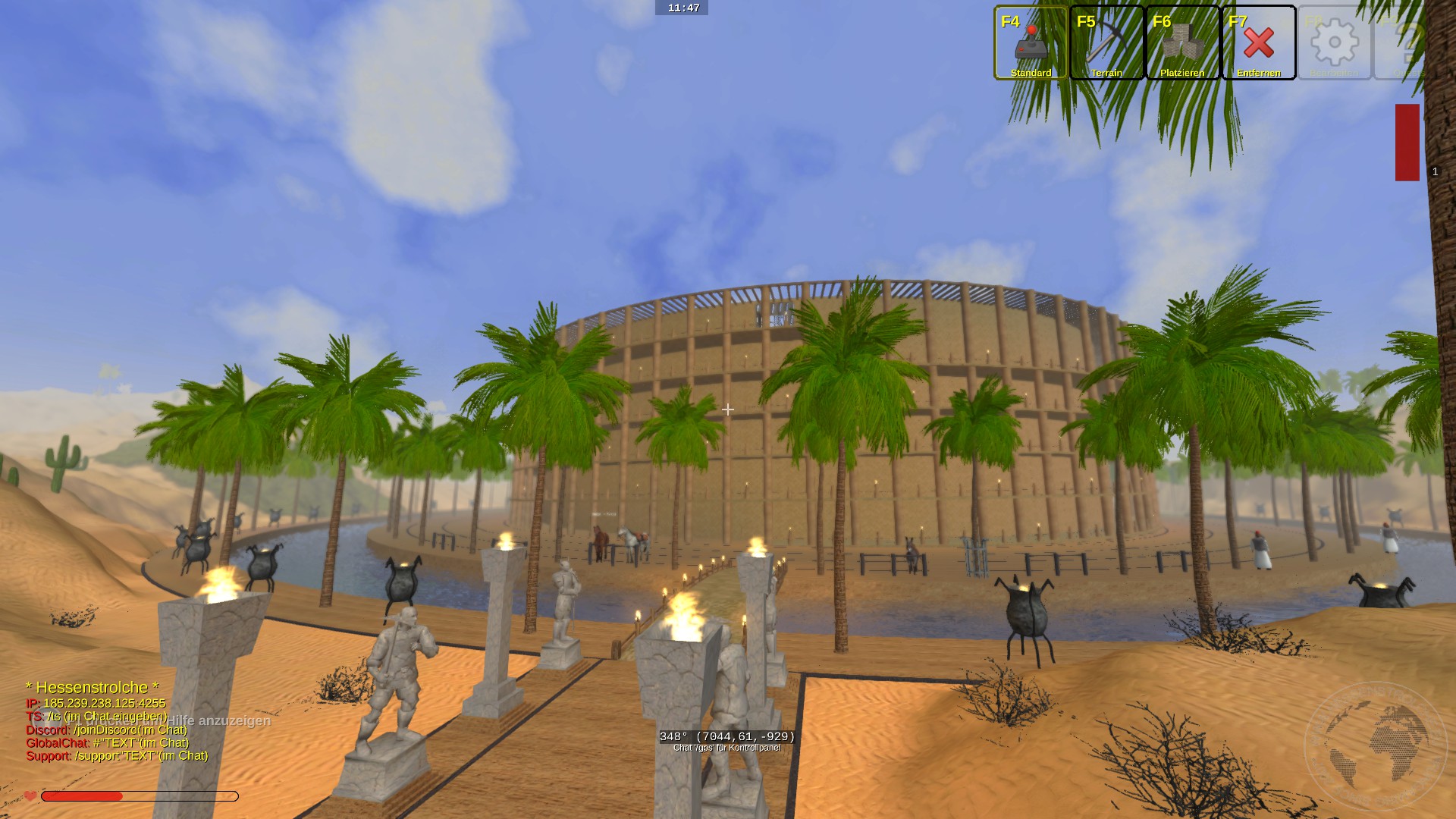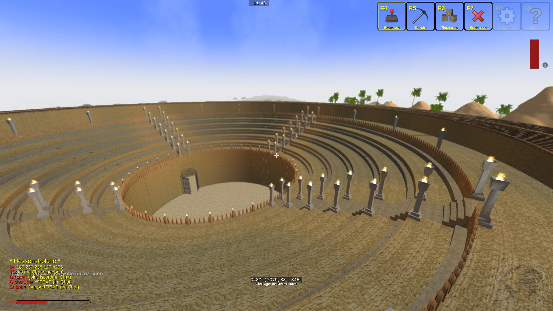 Vom Prinzip ist es ein römisches Theater. Wer es gefunden hat, läuft den Fackelweg zum Theater und überquert den runden Wassergraben.