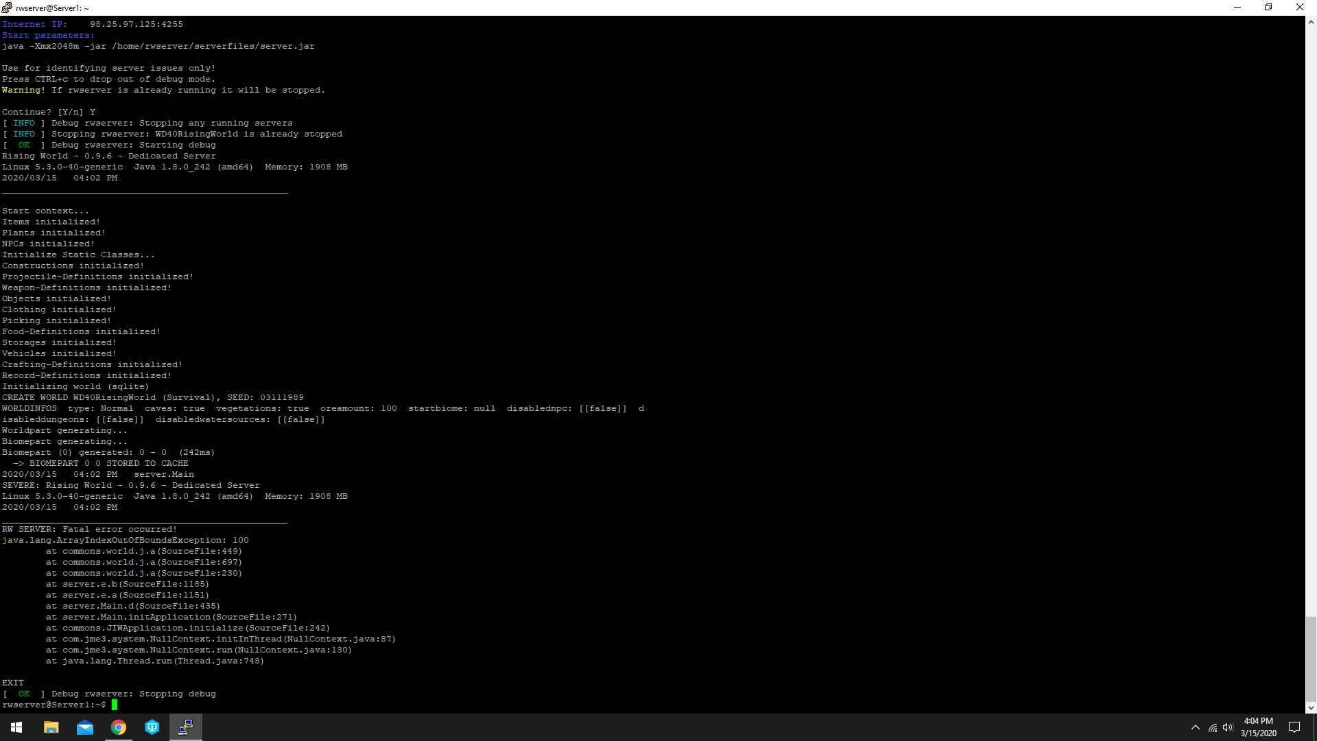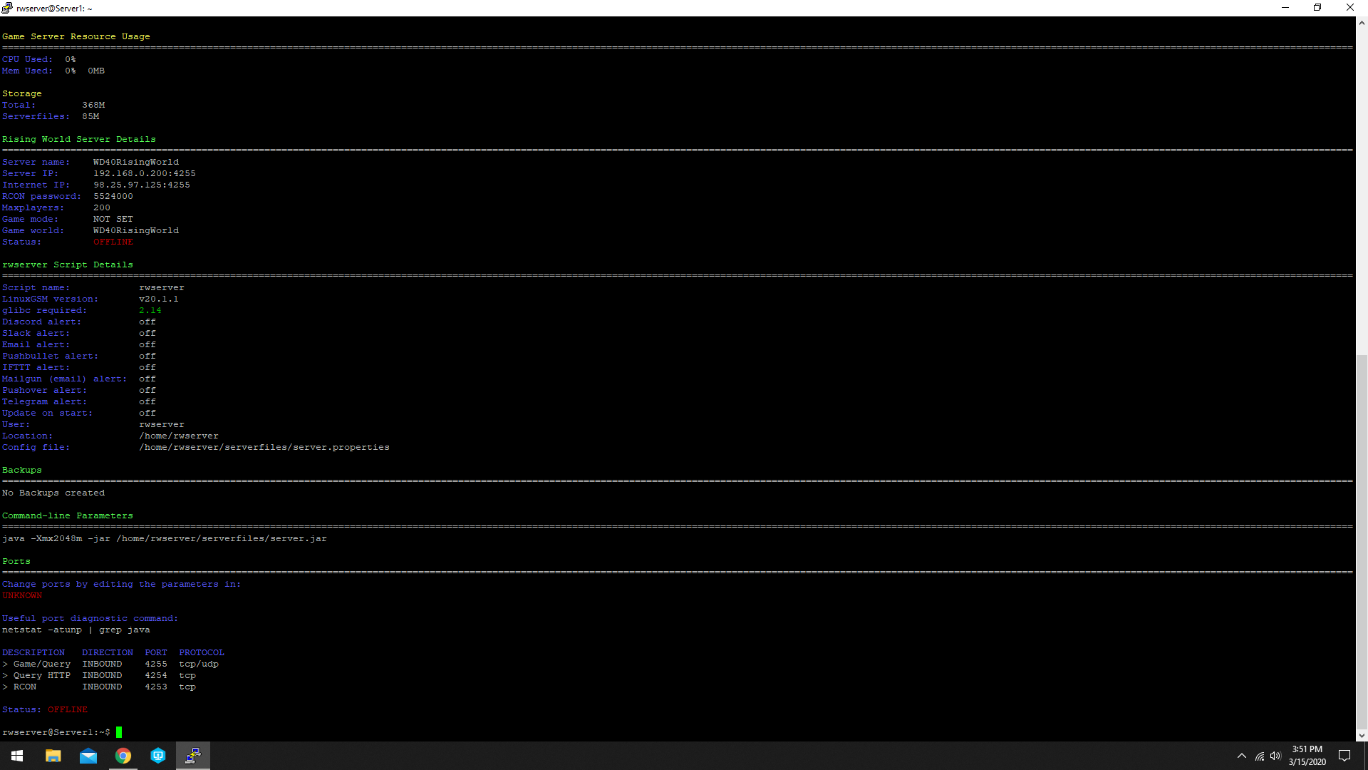 I have setup a dedicated server in Ubuntu 18.04 with LGSM and when i start the server "./rwserver start" it tells me it starts then stops almost immediately as seen in picture here