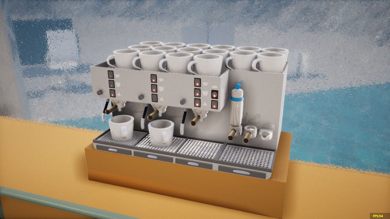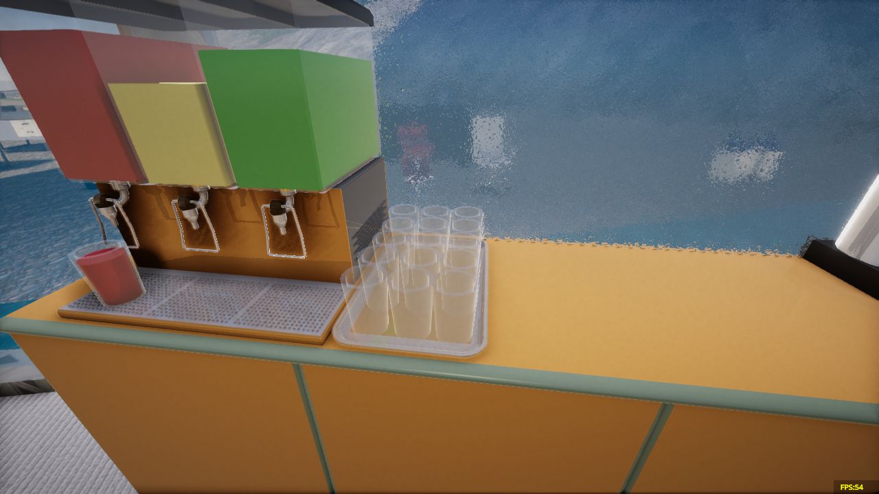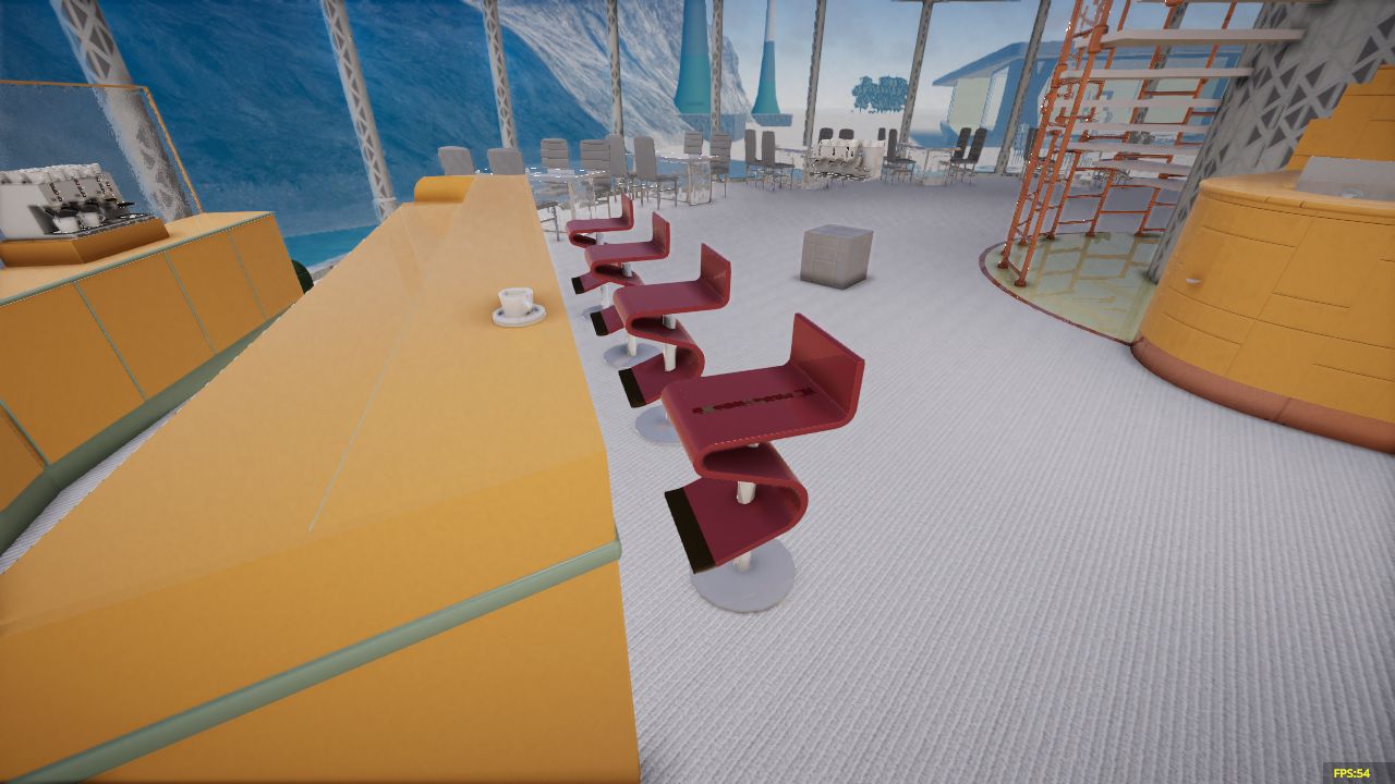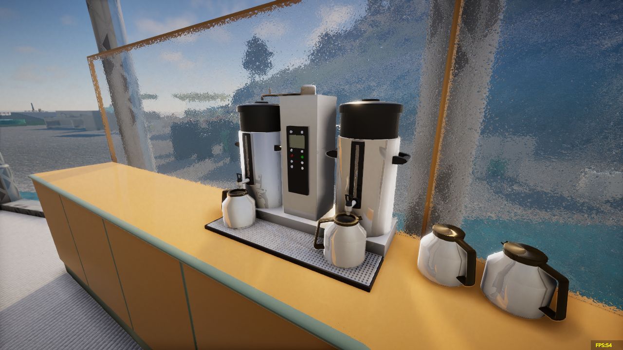Die anderen Bilder zeigen eine kleine Kantine mit Einrichtung.