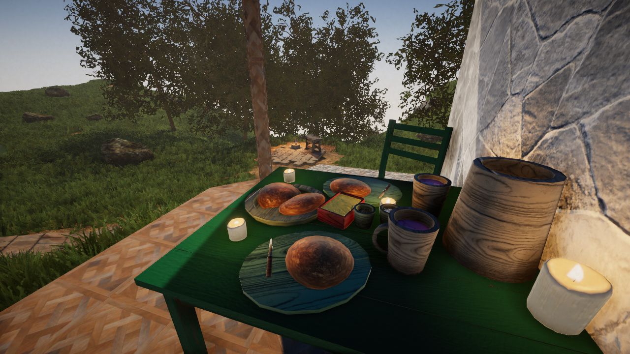2. Bild. hab nen Stuhl etwas geschrumpft und in die Baumstammbank integriert (mit strg. fixiert und dann vervielfältigt).