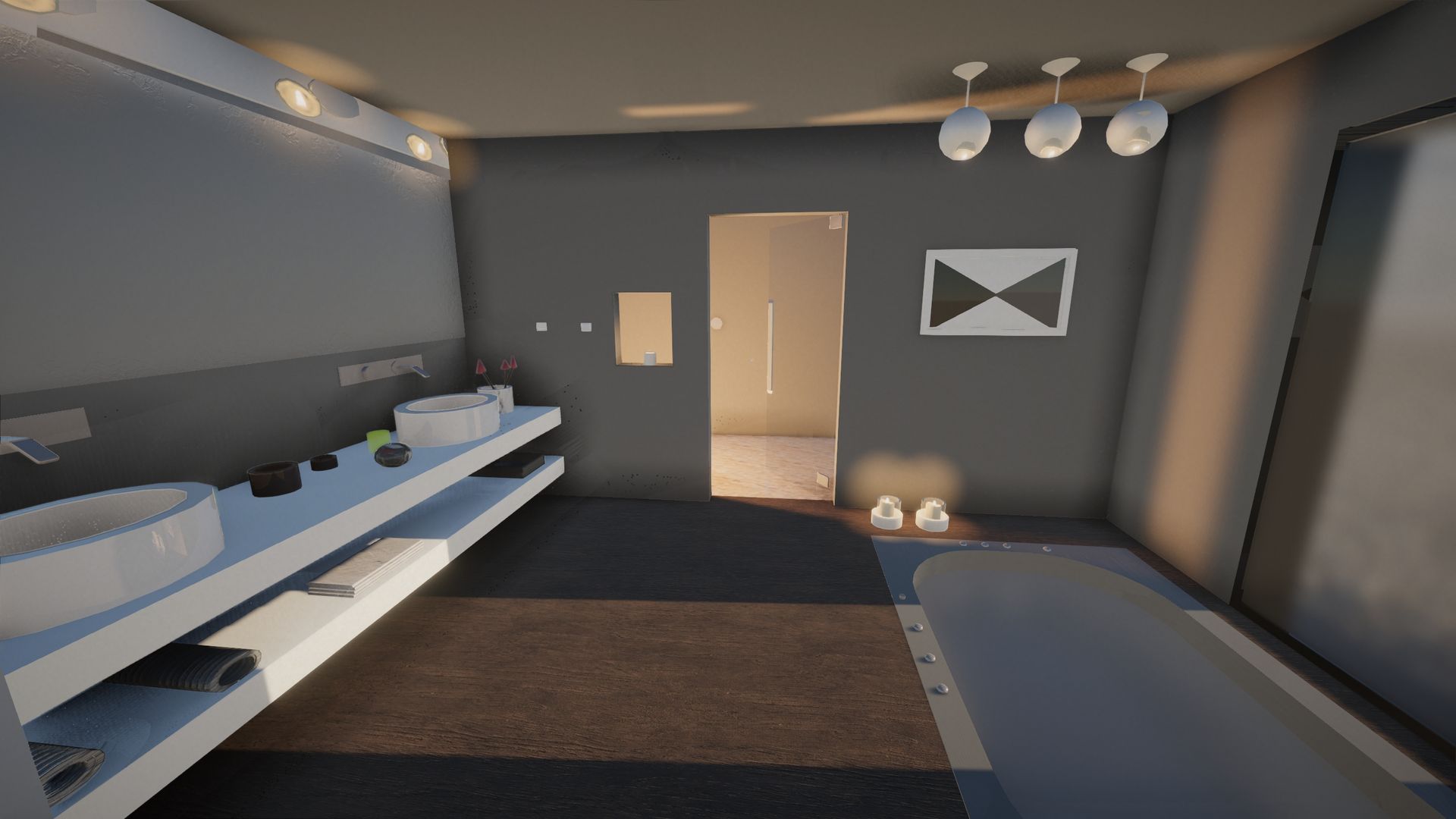 Ein schickes Bad mit genialen Lichteffekten der Unitiy-Version.