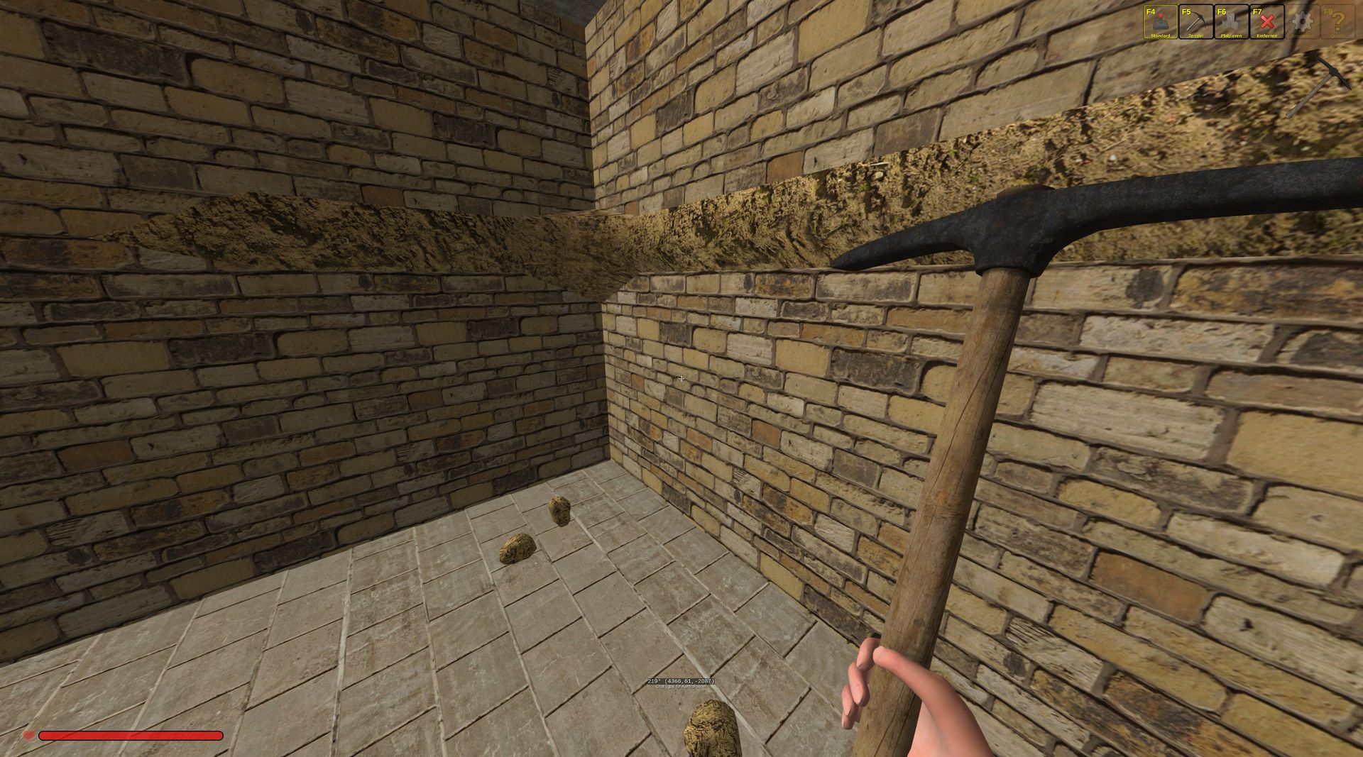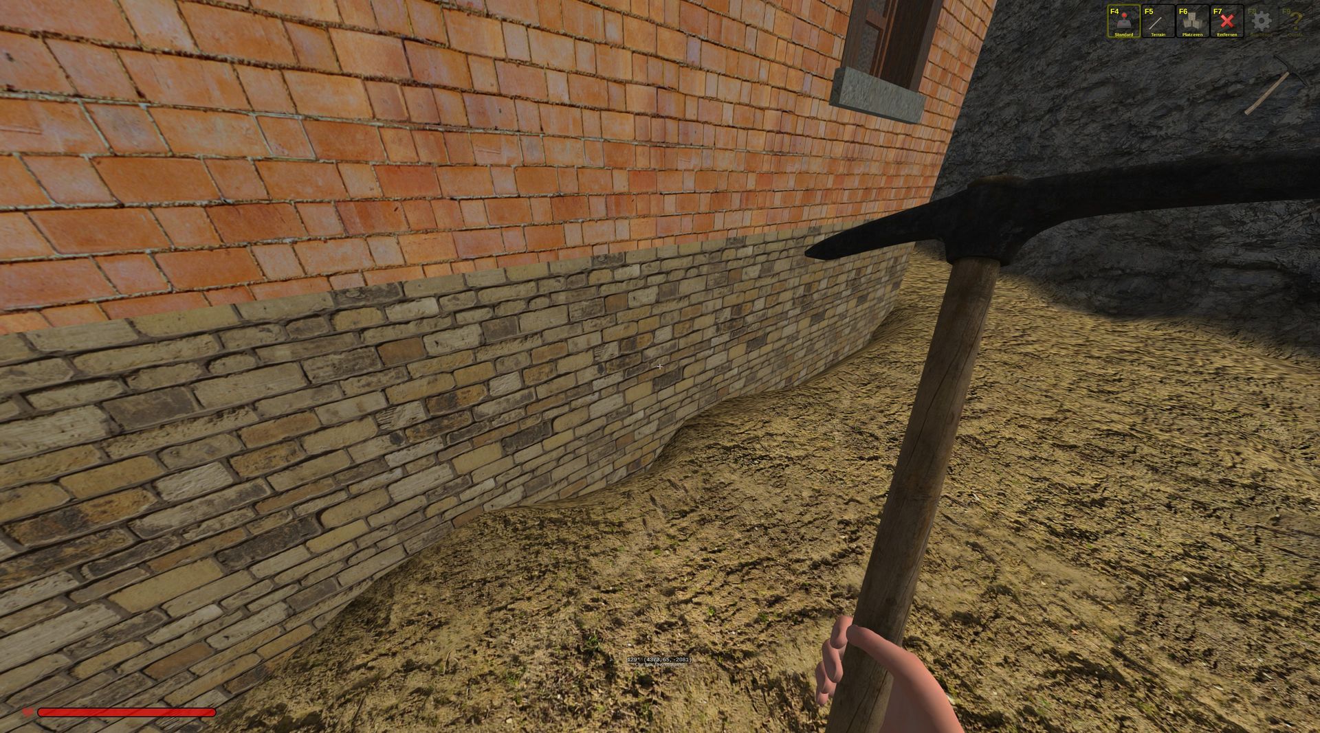 Ich habe mal ein paar Bilder dazu gemacht. Entferne ich die Erde im Haus, entstehen außerhalb des Hauses erneut Löcher.