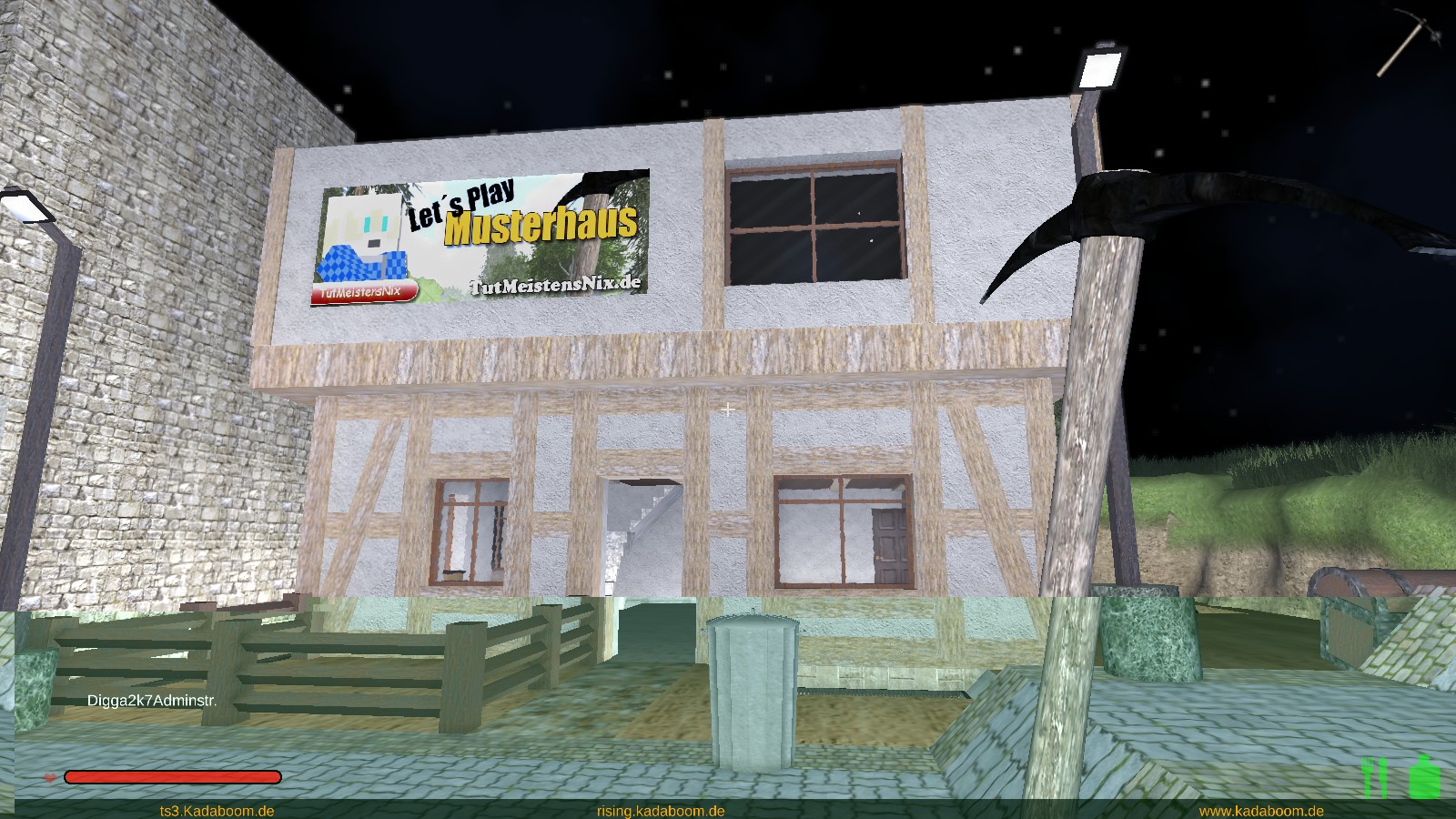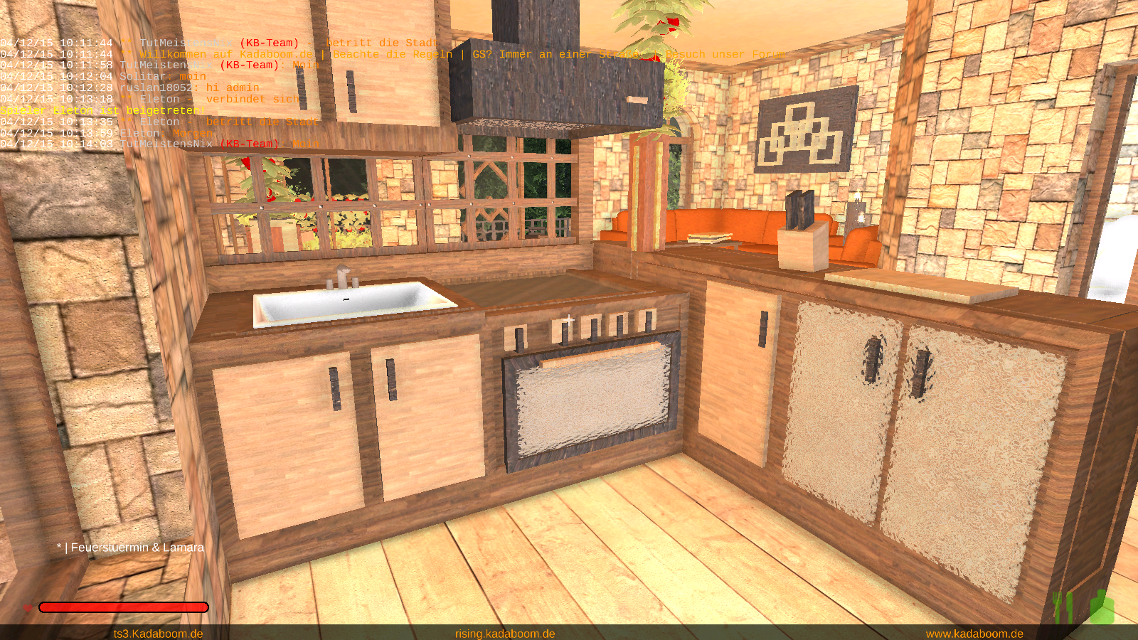 Ich habe kadaboom gerade eben mal einen Besuch abgestattet. Nach einem herzlichen Empfang hat mir TutMeistensNix als Fremdenführer Ausschnitte aus kadaboom gezeigt. Danke dafür! Ihr seid wirklich Klasse so viele Details ohne das man auch nur ein Poster sieht als Besucher, der Wahnsinn. Das Highlight war das akustisch beeindruckende und mir Lichtspielen versehene Haus (Halle) das in eine Berg gebaut wurde. Viel Spass noch bei eurem Server Projekt, das sieht jetzt schon gigantisch aus und wenn ich darf werde ich Euch hin und wieder einen Besuch abstatten, lohnt sich, gibt wahnsinnig viel zu sehen.