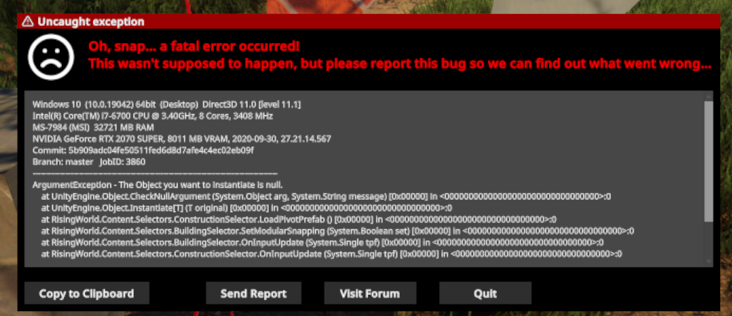 In the meantime, you can avoid this crash if you use modular snapping only for blocks