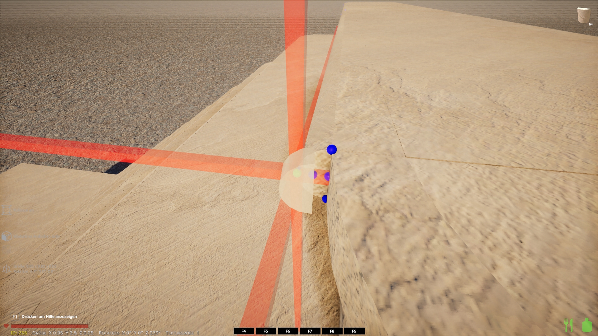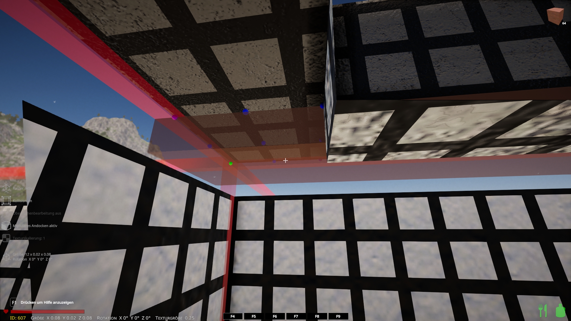 Nach dem Patch verschieben sich die Teile wieder ineinander - Ich habe einen Block (1, 1, 1) auf die höchste Rasterform gesetzt, an der linken Mitte angesetzt, die Breite auf 4 Blöcke gesetzt und mit Enter platziert - Wenn ich dann mit einem anderen Material oben drauf am Rand eine dünne Wand setzen möchte, die aber die selbe Breite (4 Blöcke) haben soll und dann oben drauf an der hinteren Mitte ansetze, dann kann es vorkommen, dass beim Setzen die Wand um 0.001 verschoben wird!