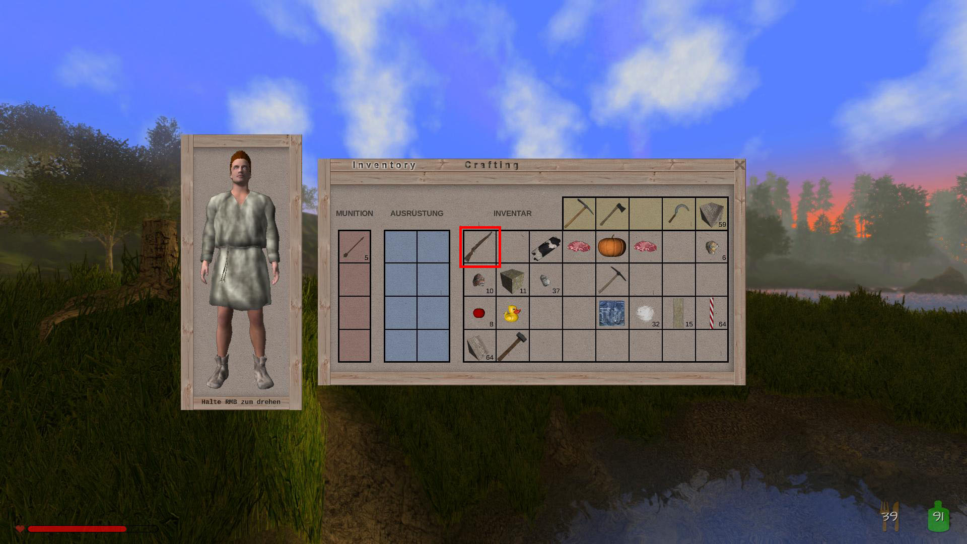 An sich könnte man die Slotleiste in der Unity-Version auch beim Öffnen des Inventars nach oben verschieben, aber wenn man das alte Layout verwendet, sehe ich folgendes Problem: Falls die Slotleiste in Zukunft vergrößert werden kann (durch einen Rucksack usw.), wird diese nicht mehr in das alte Layout passen, an der Standardposition unten, wird das jedoch kein Problem sein.
