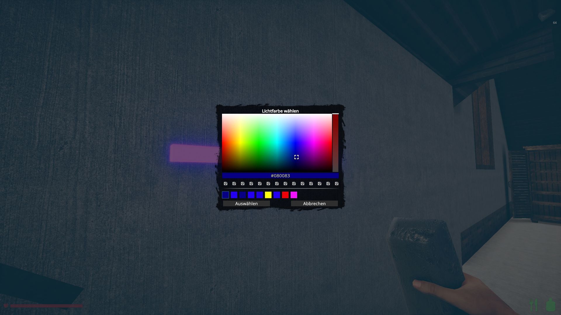 - [Neu] Leuchtmaterial und Lampen haben ein Radial-Menü (Interaktionstaste halten), in welchem Lichtfarbe und Helligkeit geändert werden können