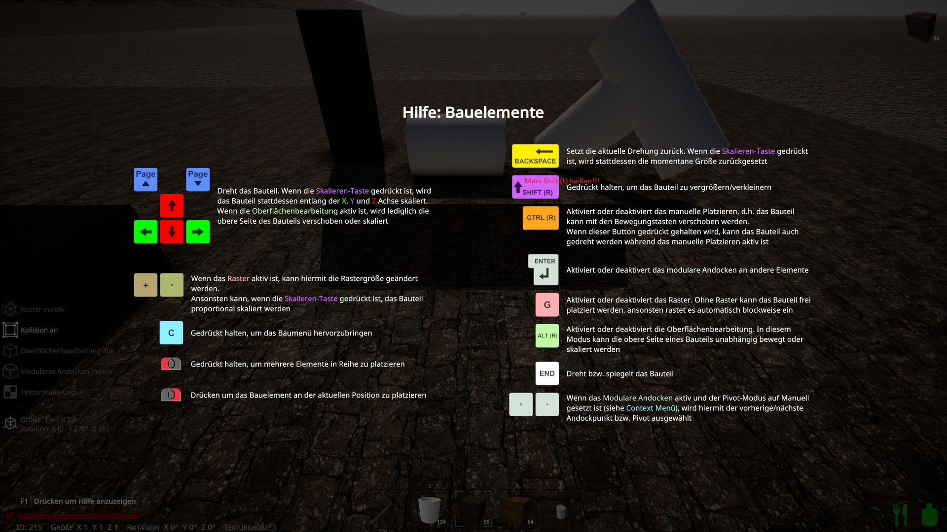 Nach einiger Bauzeit in der neuen Version ist mir aufgefallen, dass die Transformation der Bauteile mit den Pfeiltasten (sowie Bild auf/Bild ab, +, -) nicht wirklich ergonomisch ist, da man entweder seine rechte Hand von der Maus nehmen muss oder seine linke Hand auf die andere Seite der Tastatur bewegen muss, damit man an diese Tasten herankommt. Das ist an sich kein gigantisches Problem, aber elegant ist es auch nicht und ein wenig mühsam bei längeren Baurunden.
