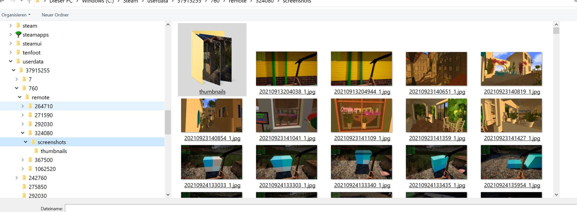 Meine Steam Screenshots werden mir im Steamordner angezeigt. Ich bin aber nicht in der Lage den gleichen Ordner für ein Hochladen in Rising World zu öffnen. Der Dateipfad ist zwar der gleiche aber hier im Forum öffnet der Ordner Screenshots, das Bild nur in den Thumbnails und somit viel zu klein.