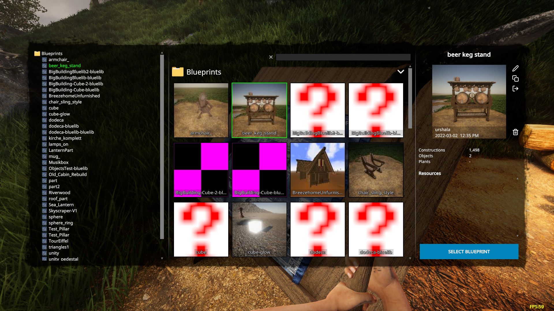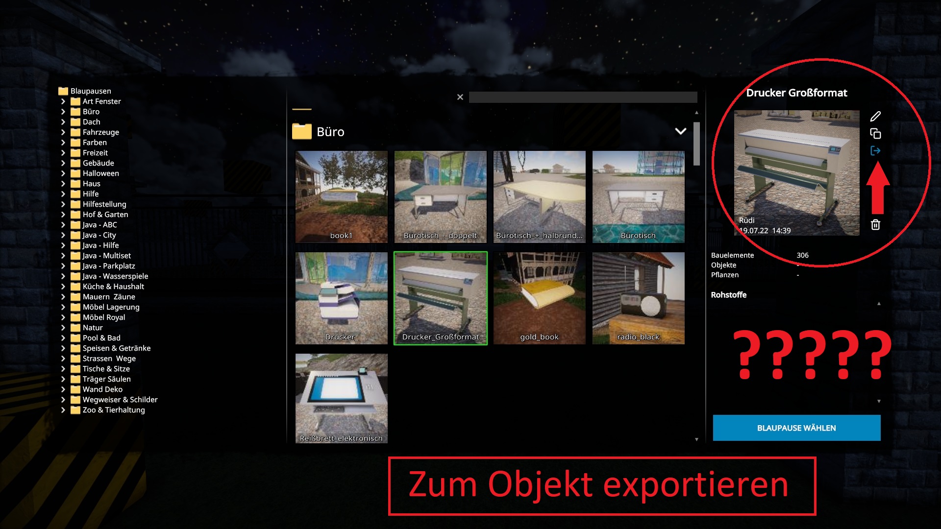 Im Blaupausen Fenster ist mir eine interessante Funktion aufgefallen. Und zwar das exportieren von Blaupausen zu Objekten.