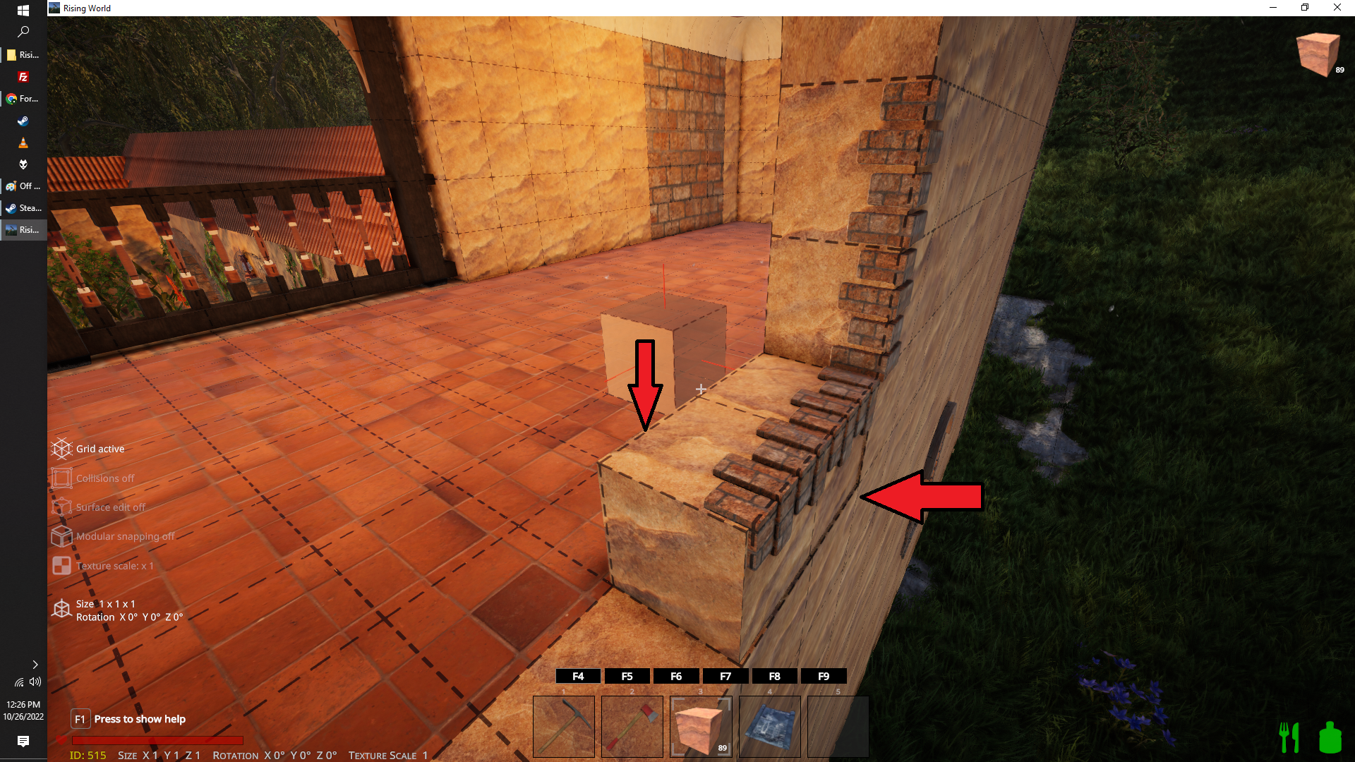 Bluepring Placement settings: Move Precision = 1; Scale Precision = 1; Rotation Precision 90; Rotation Mode = Default; Collisions = On.