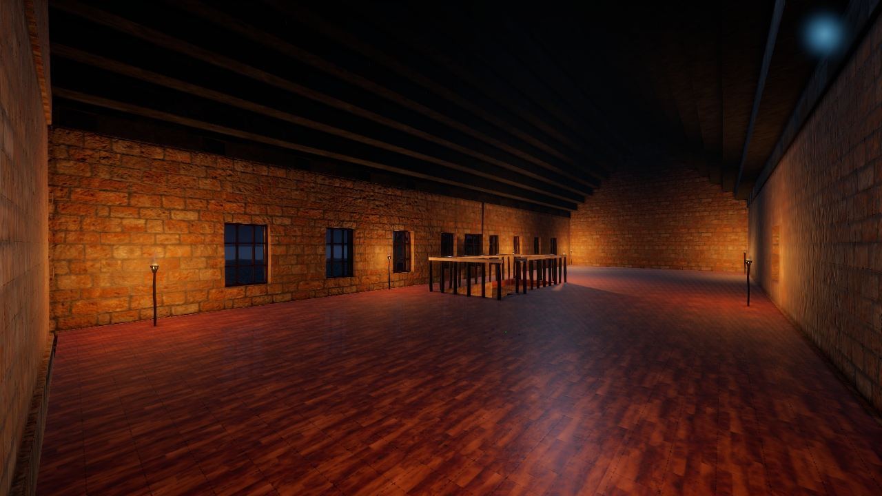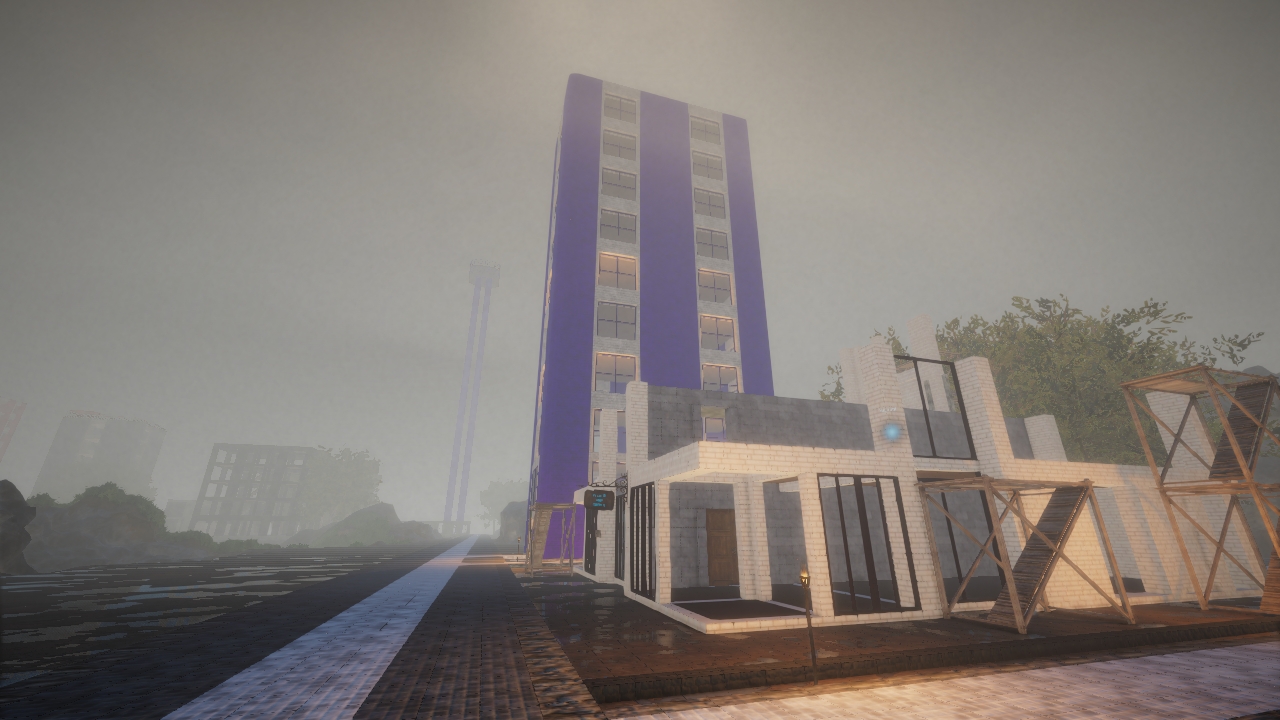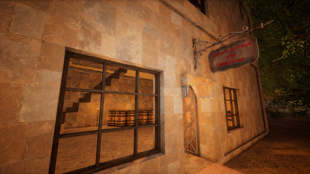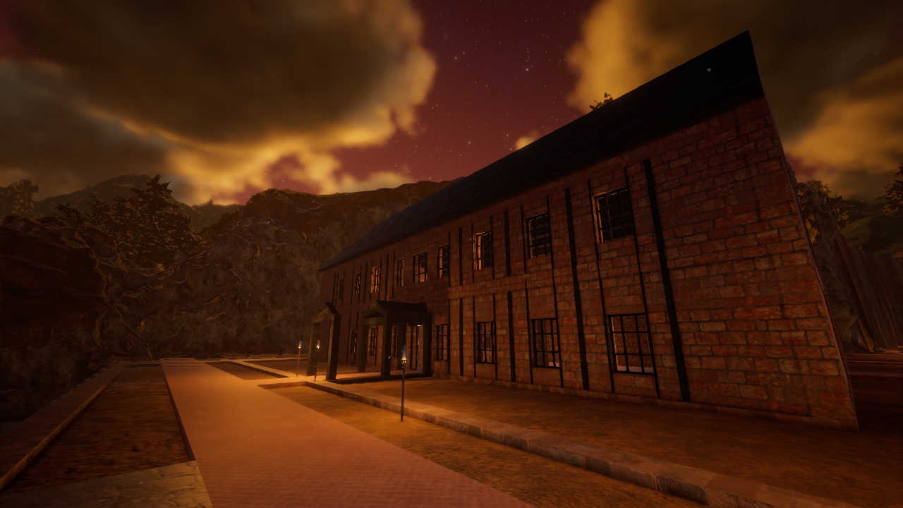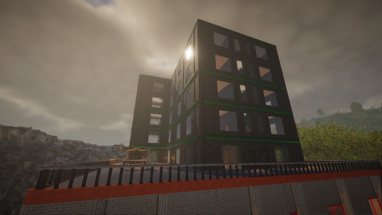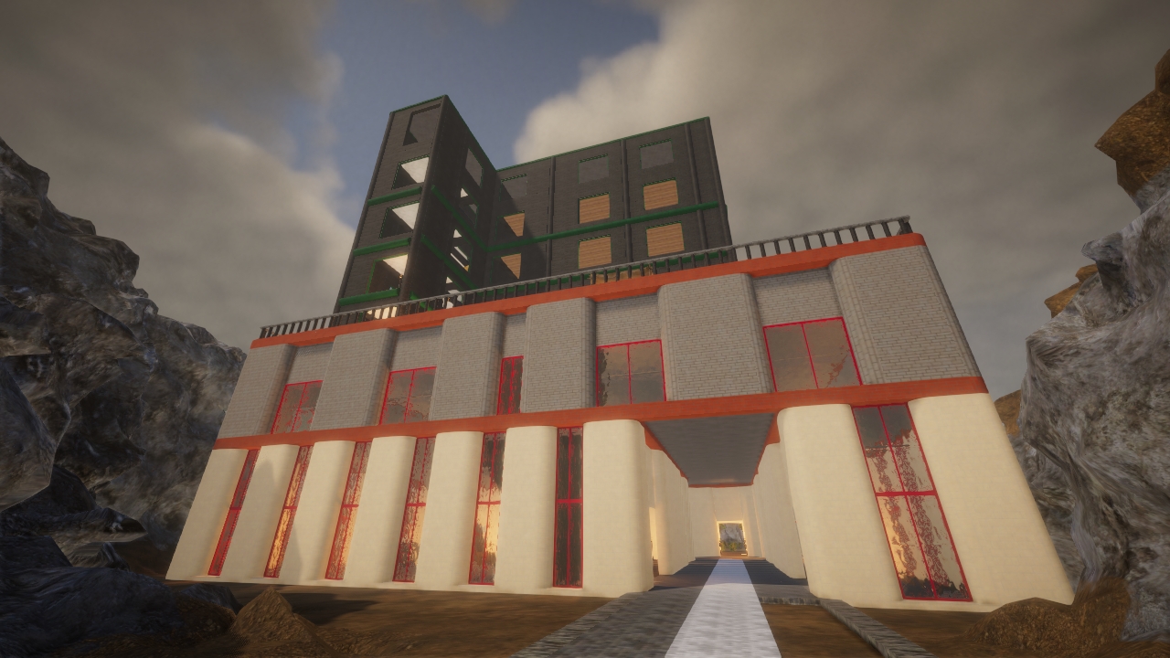 A multi-purpose building containing crafting and storage on the first floor. It eventually feeds into the planned train station on the side, and being a hub for both portions of Vathunver. It's in the middle of the city serving as a critical supply and transportation route having a road running through it.