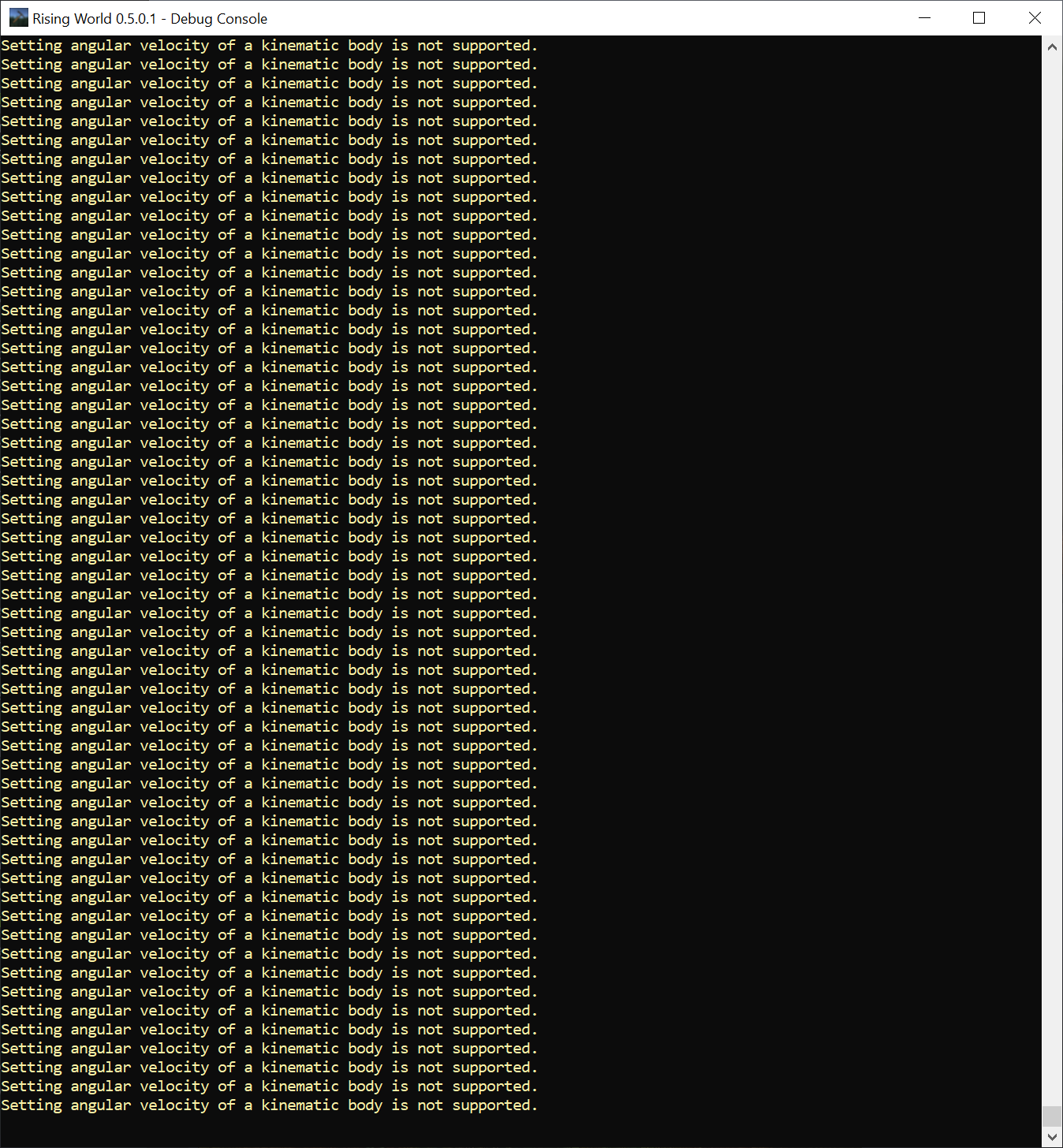 Nov 6th 2022 #2 Oh, thanks for letting us know! I guess this happened in multiplayer? If you see this again, could you maybe send a report (jus type "report" into console and maybe add additional info like "warning spammed in log" or something like that)?