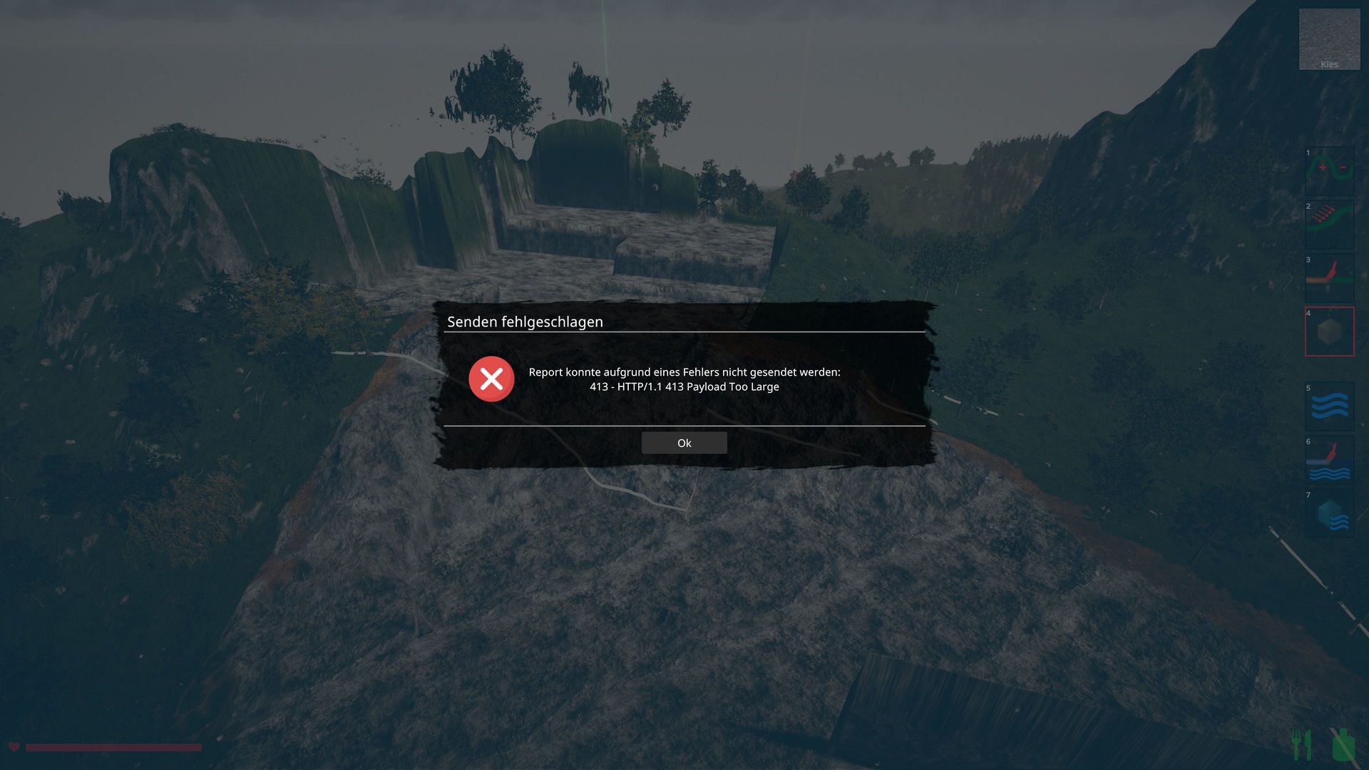 Beim Terraformen habe ich riesige Probleme. Report funktioniert dafür leider nicht. Eine Fehlermeldung bzw. Log gibt es nicht.