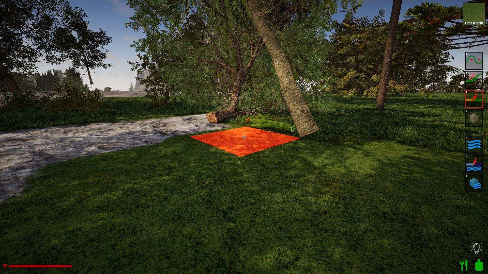 Leider wird durch das Aufmalen von Gras auf Terrain mit F5-3 auch Bäume usw. entfernt. Siehe Bild.