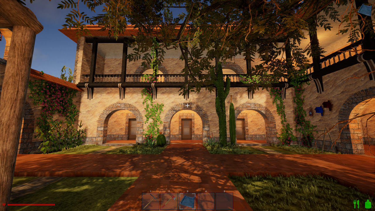 I've learned a lot since I built "Rancho Sonora" in the first barebones unity-land, so I rebuilt it from the ground up. The rooms are bigger, there are more fireplaces, and I've expanded the second floor. It's sparsely furnished because I haven't quite reached the level of fancy furniture building yet. (All of you have fabulous ideas and beautiful creations in furniture. Thank you for the inspiration.) Feel free to make it your own, but please don't repost it. Thanks.