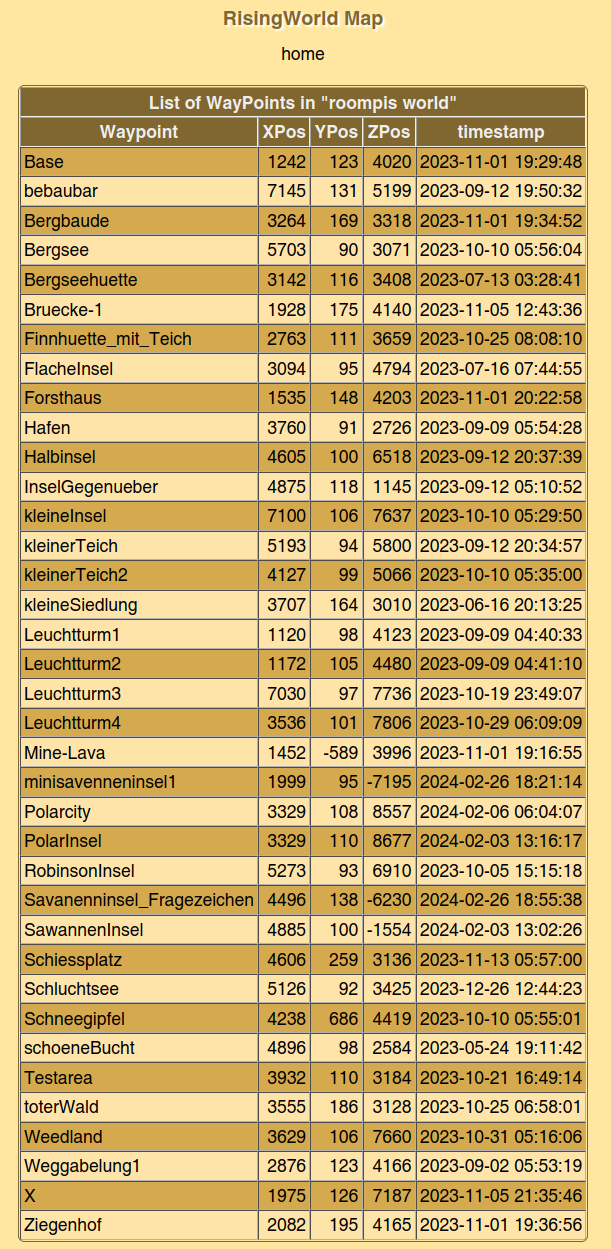 Preach I wanted to create a map of my island with paths, streets, lakes, islands and buildings because there wasn't one before. Hence the different waypoint types. Since the latest update there is finally a map available where points can also be saved, that's basically taken care of.