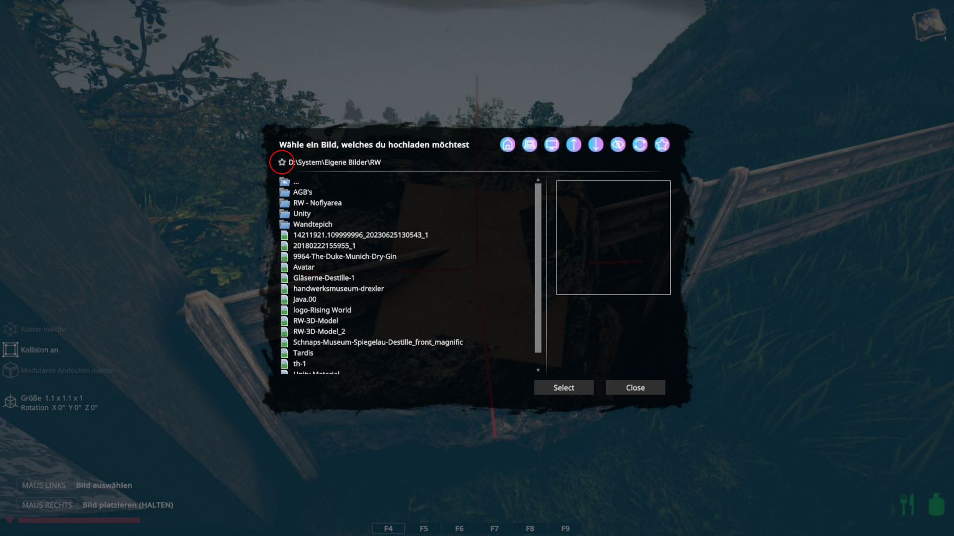 • [Neu] Poster, womit eigene Bilder von der Festplatte in der Welt platziert werden können