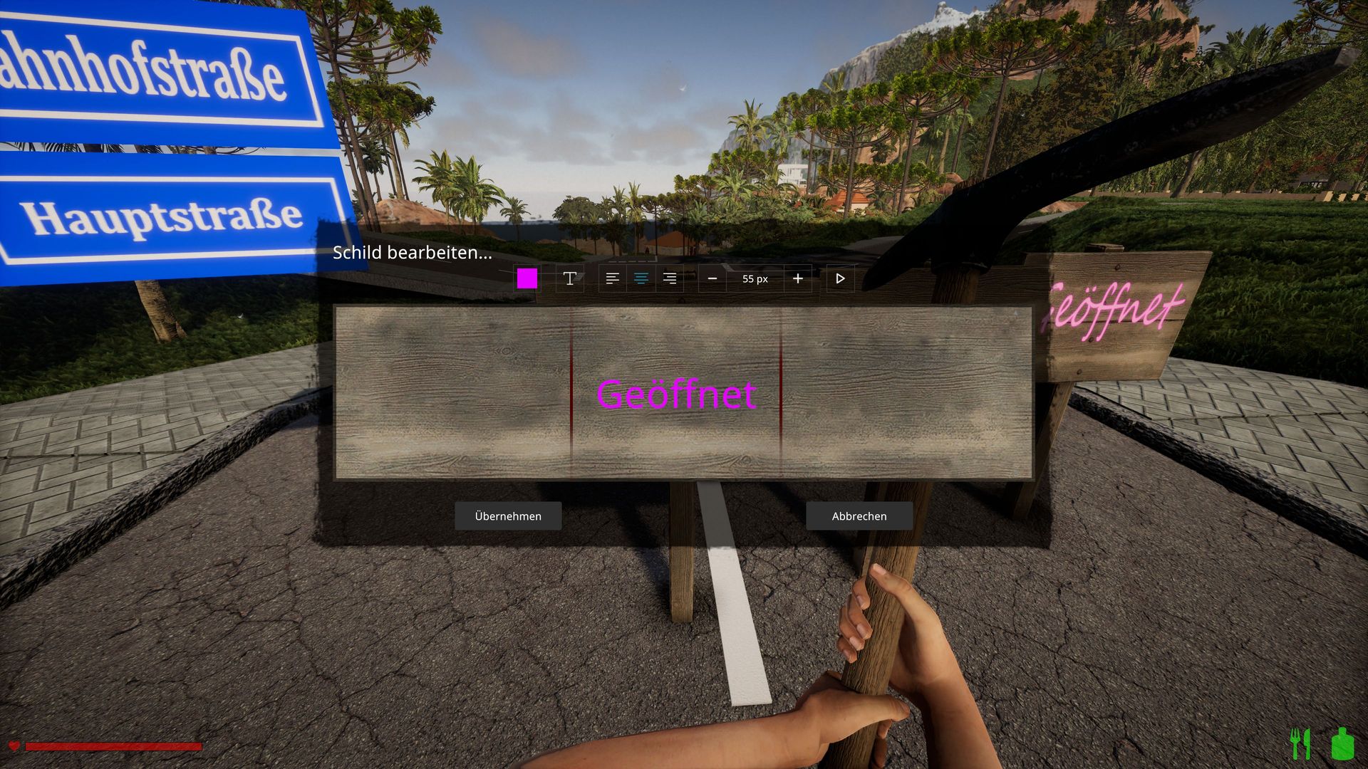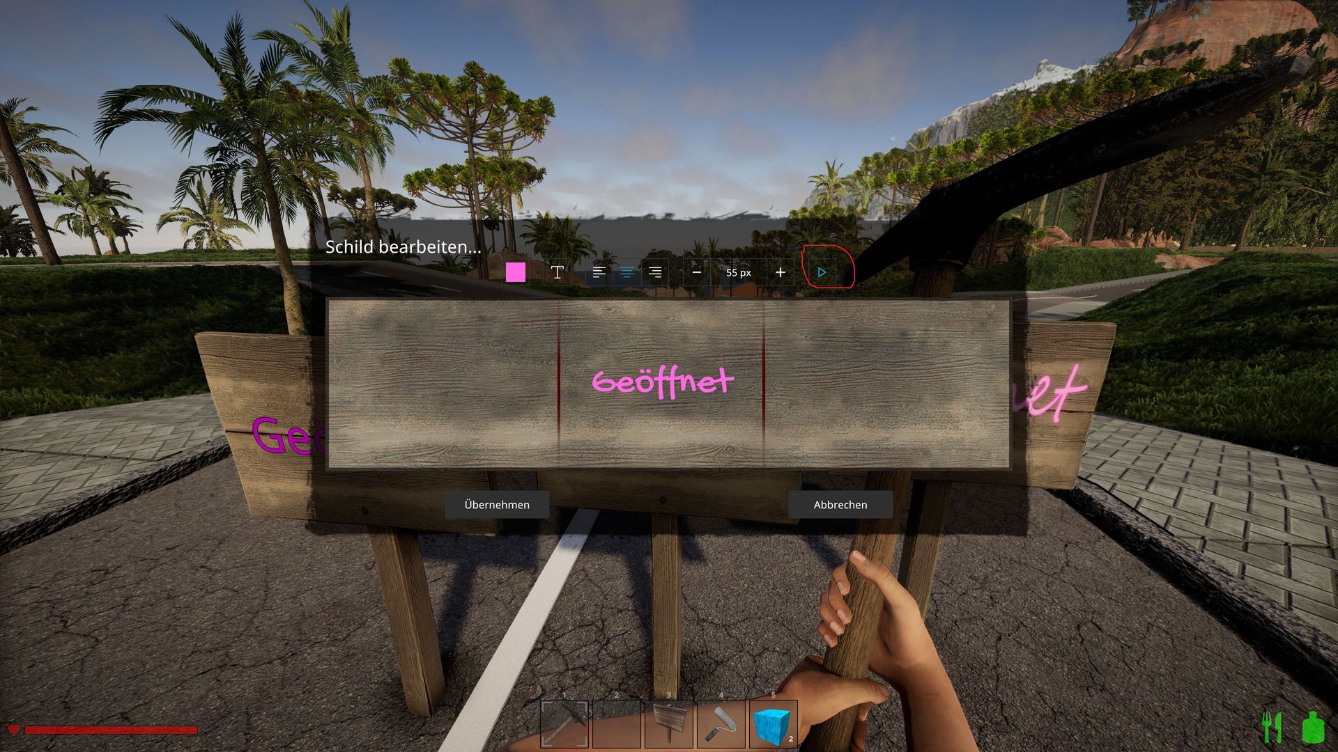 Entweder packen wir das direkt in den Texteditor rein, oder ggf. als Option im Radialmenü (wenn man das Schild anwählt)
