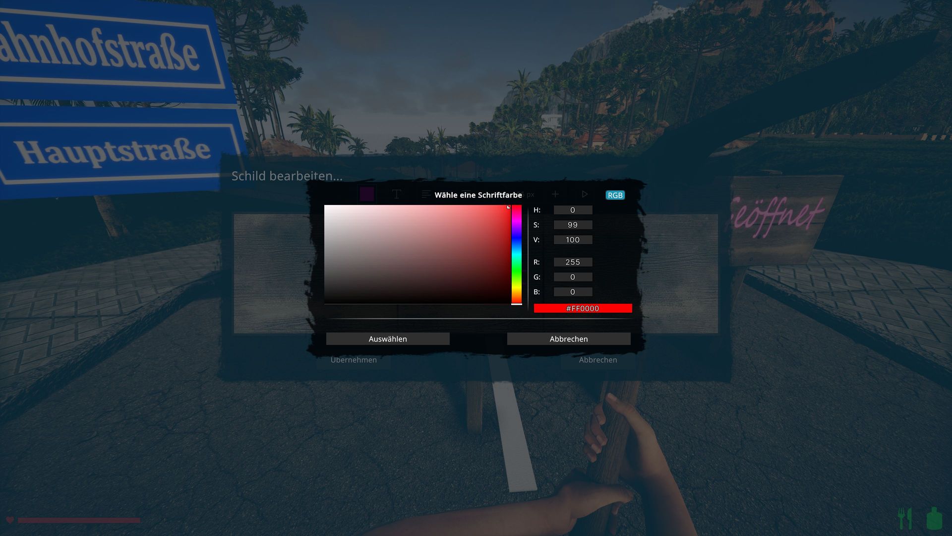 Was mich bei den Schildern, wie auch oben angesprochen wurde, ist das andauernde Wiederholenmüssen der Schildschriften beim nächsten Schild, da es keine Speicherung dafür gibt. Ebenfalls wird die Farbcodierung weder angezeigt noch gespeichert, sodass die Farbauswahl wieder von vorne beginnt.