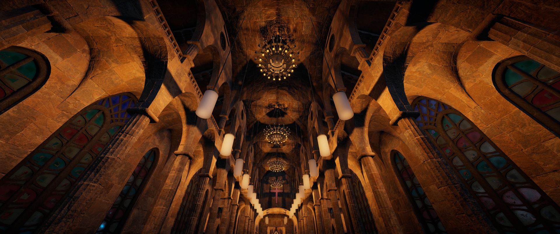 There are also 2 small side aisles and a main altar. But I designed them the same way, except that there are confessionals behind the side altars. I had the most fun with the organ on the gallery, that was actually the reason why I built a church in the first place. Outside I have now removed the lighting for the blueprint, because unfortunately you already have the motion detector effect and the farthest lights are off - and I already have that set to the maximum 100 lights. If you have high game and light settings, I recommend visiting the church at night. Have fun with it and if you post screenshots of it on Steam or anywhere else, please credit me^^.