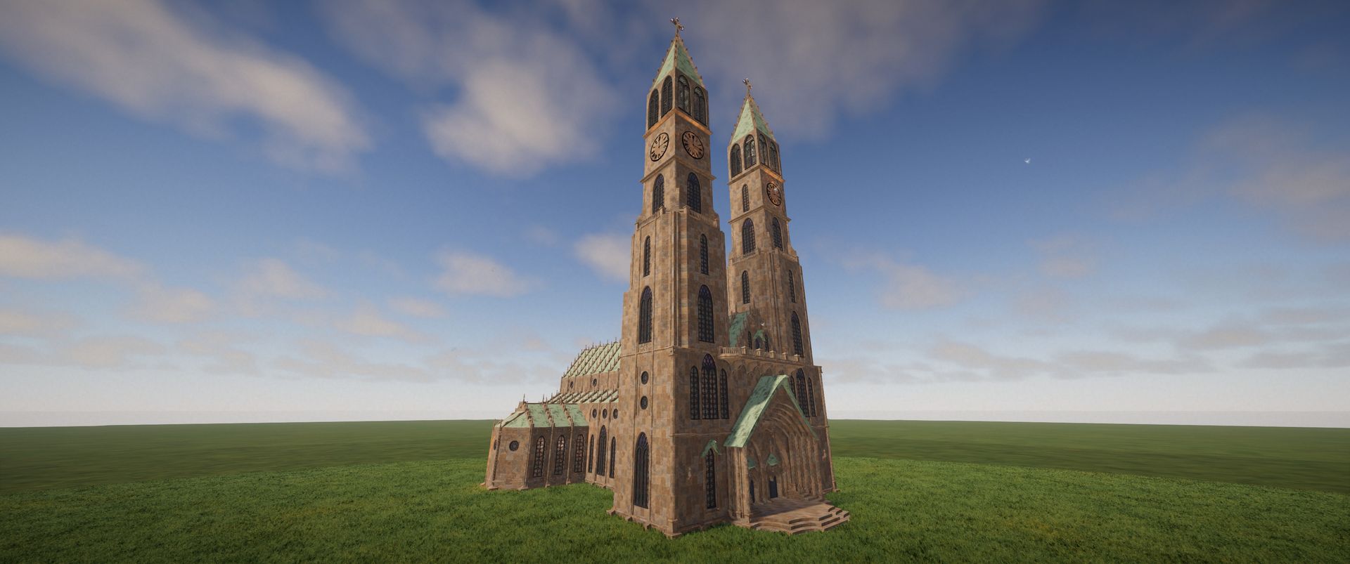 die letzten paar Tage habe ich an einer Kirche gebastelt. Die Blaupause ist ohne Pflanzen und Terrain, aber leere Blumentöpfe zum befüllen sind teilweise schon eingebaut. Das Bauwerk ist etwas größer und hat rund 120.000 Bauteile und 673 Objekte. Da ich auch auf die Ausleuchtung bei Nacht wert lege, sind viele Lampen verbaut. Der Turm ist begehbar, Glocken sind angebracht, auch wenn die große Glocke wegen des Schwing-Winkels wahrscheinlich ein Tick zu groß geraten ist