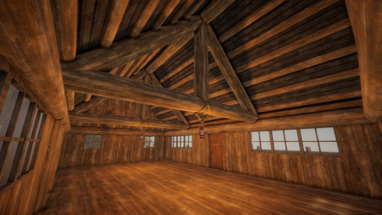 my first proper house in the new version! just a simple single-room log cabin. i intend to rework and expand upon it at some point (add fireplaces, rework the windows/walls so i can add room partitions, maybe add a loft, etc), but i think it's quite useable in its current state and i'm happy to show it off. special note; the flat interior walls can be edited/painted separately from the exterior log siding! and while it's built on a hill originally, it wouldn't take much to tweak it for a flatter space.