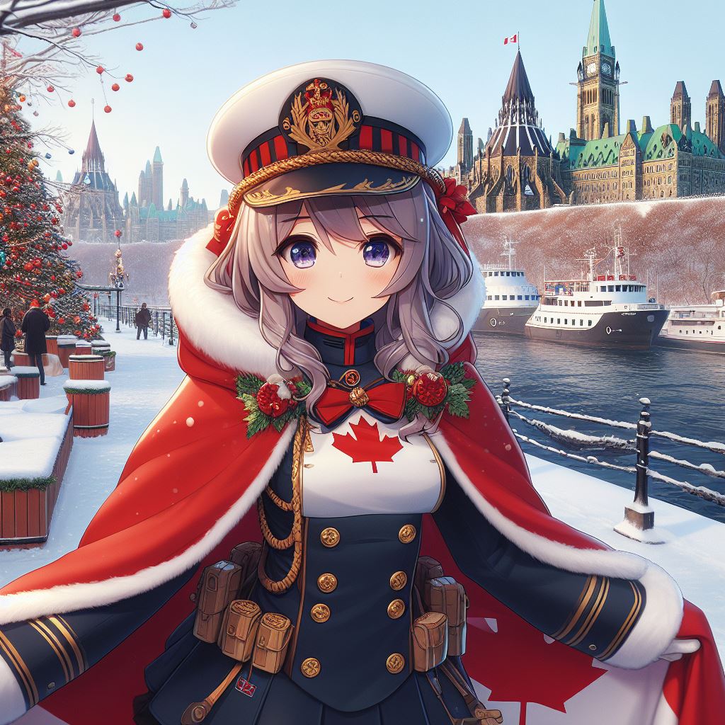 Here are some Bing AI Image generation of Azur Lane Canadian shipgirl during Christmas, also in Ottawa. We need SOME festive mood in here, especially with all the negativity floating around.