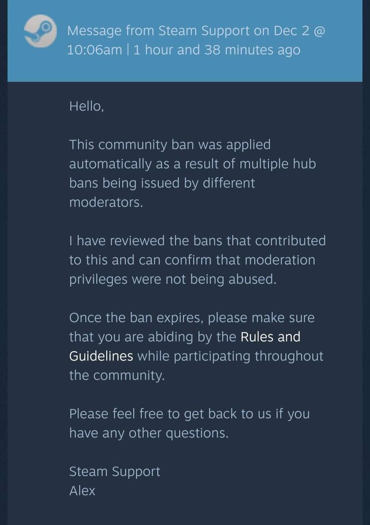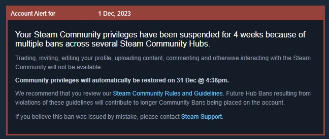I wonder how nice people shall be now knowing I have no interactive capabilities on Steam. I won't be able to upload anything until January 1st. I blame Steam for doing the most damage for giving in to people who abuse the report button.