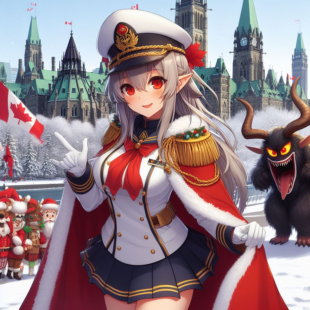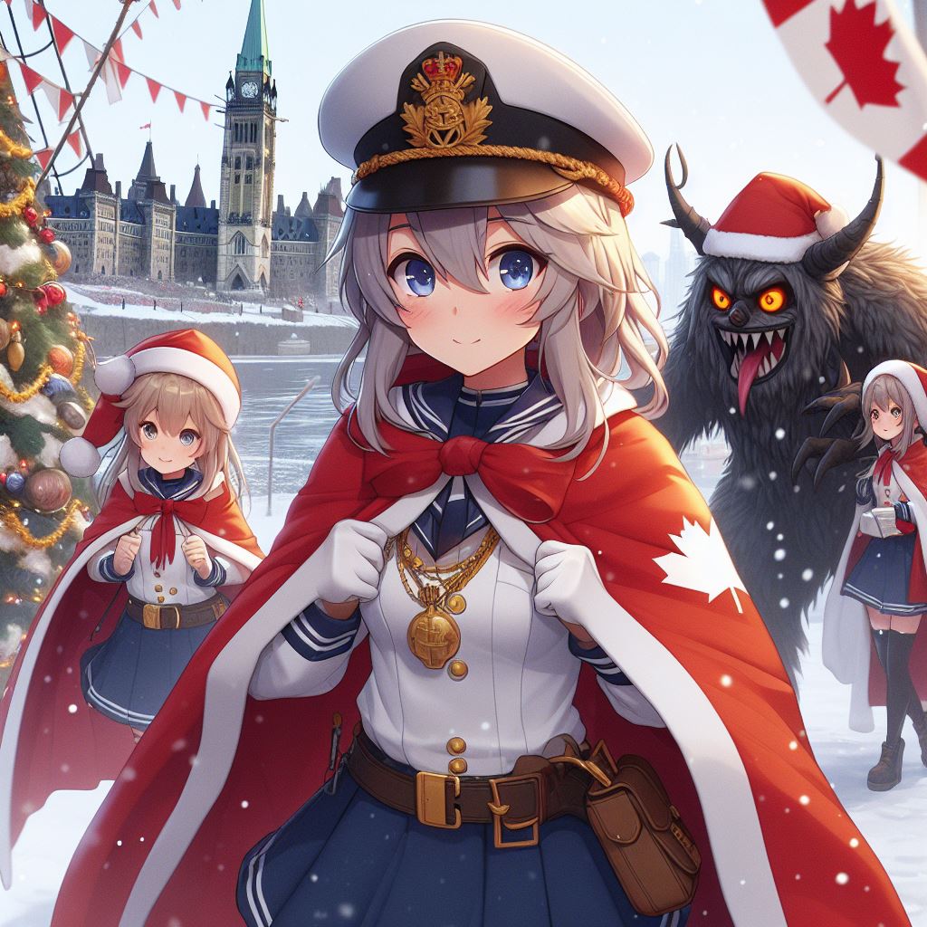 Here are some Bing AI Image generation of Azur Lane Canadian shipgirl during Christmas, also in Ottawa. We need SOME festive mood in here, especially with all the negativity floating around.