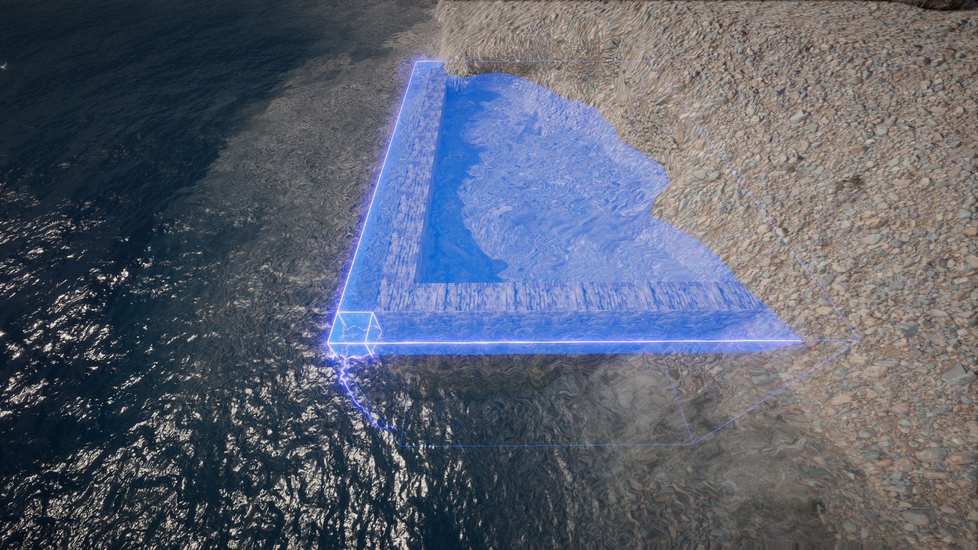 If so, I would put a wall of static water in front of the block wall facing the ocean