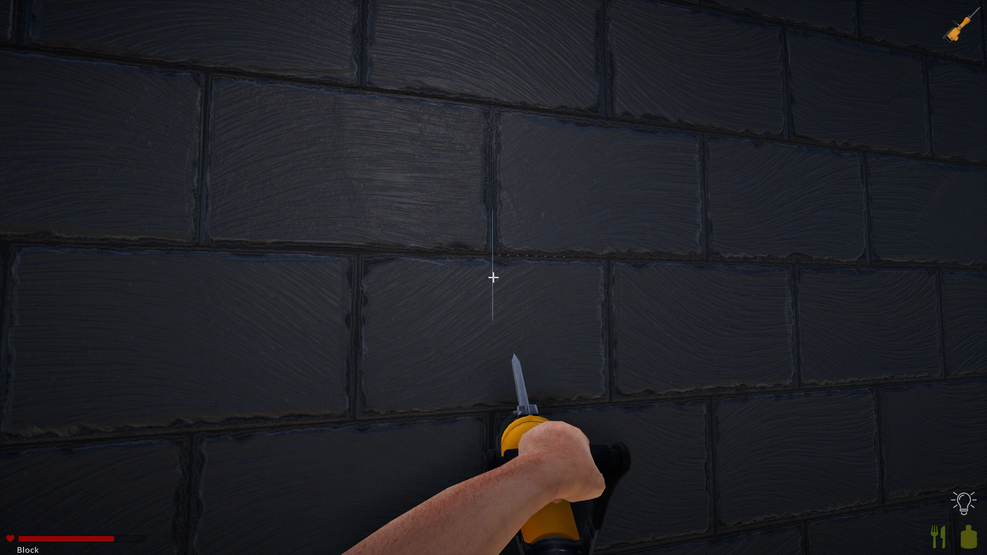 Big white dash line above the crosshair and more speckles on the wall.