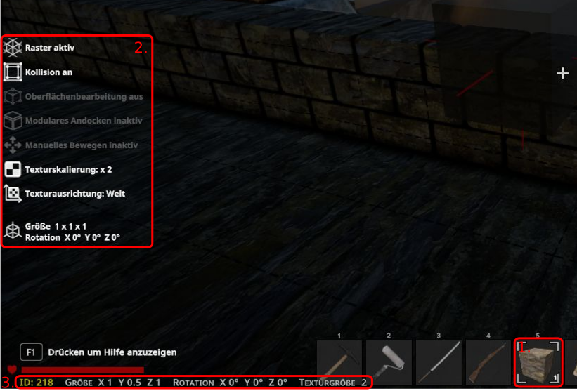 Hier in der Unity Version steht unten links im HUD nur "Block". ![]()