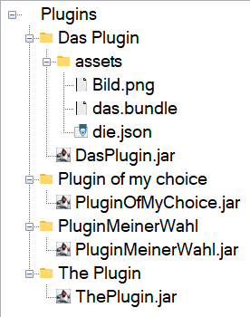 Either a separate sub-folder of the Plugin exists in the RAR archives *.jar containing and, if necessary, further sub-folders such as assets or lib.