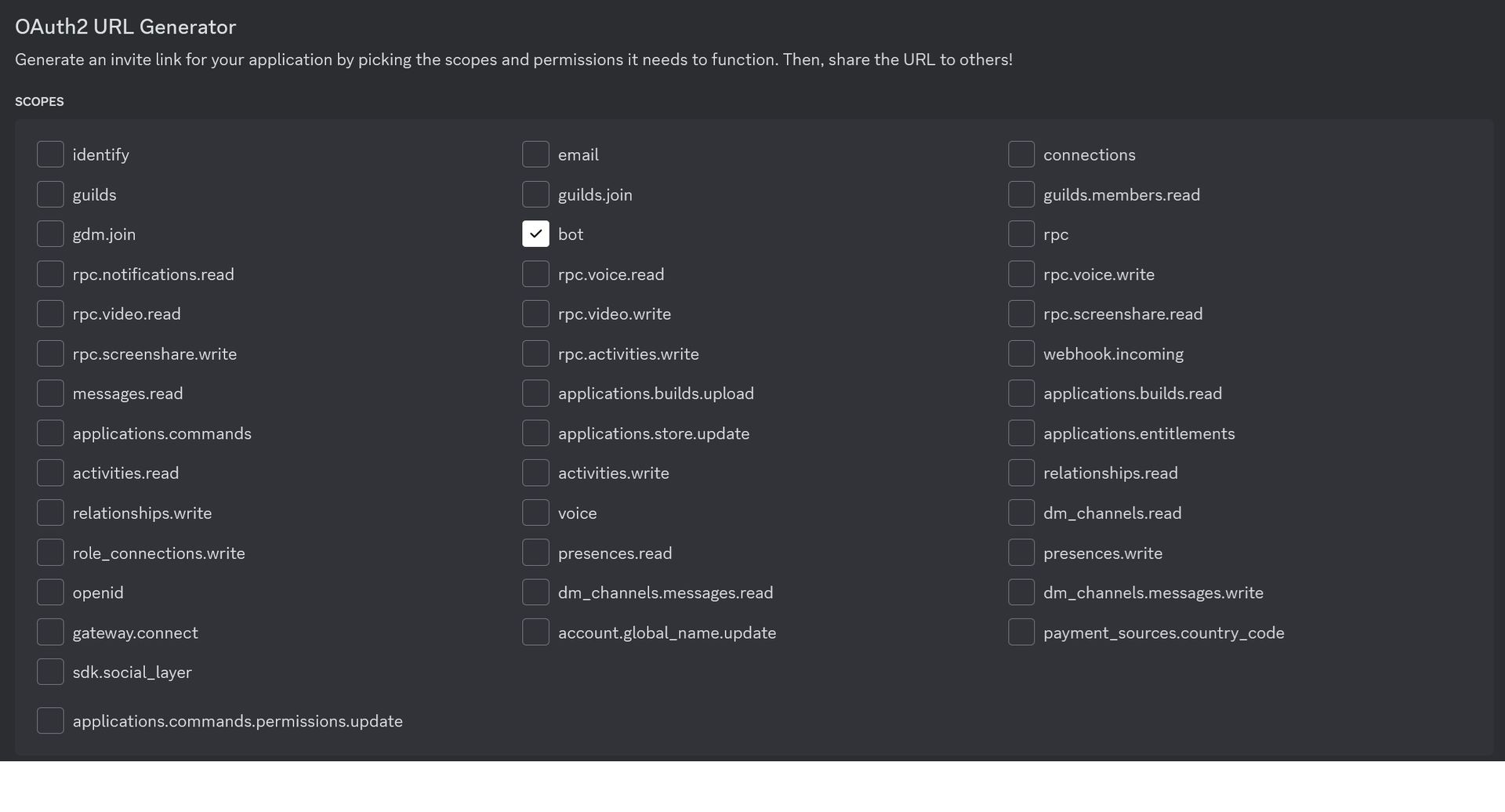 copy the link created and paste it into your web browser. this will walk you threw adding the bot to your server.