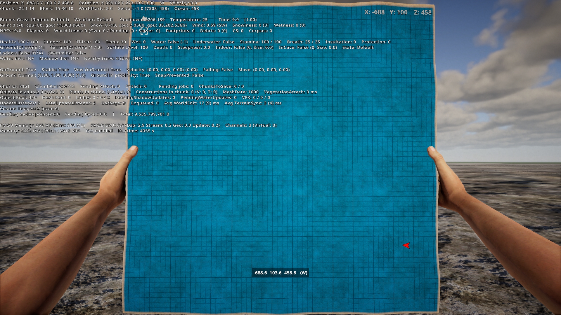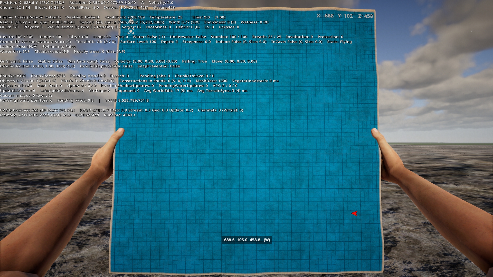 Hmm... das muss ich mir nochmal ansehen :thinking: Was die Positionsangabe angeht: Die Karte zeigt die Spielerposition (die ist immer auf Höhe der Füße bzw. dort, wo der Spieler das Terrain berührt), während unter F3 die Kameraposition angezeigt wird (also die Höhe der Augen). Der Gedanke dahinter war, dass man unter F3 vll eher die exakte Position der Kamera wissen möchte (d.h. mit der Kamera zu einer Position hinfliegen und exakt von diesem Punkt die Höhe zu ermitteln), während auf der Karte die Höhe des Terrains angezeigt wird. Wir können das theoretisch ändern, bin mir aber nicht sicher, ob das sinnvoll ist?