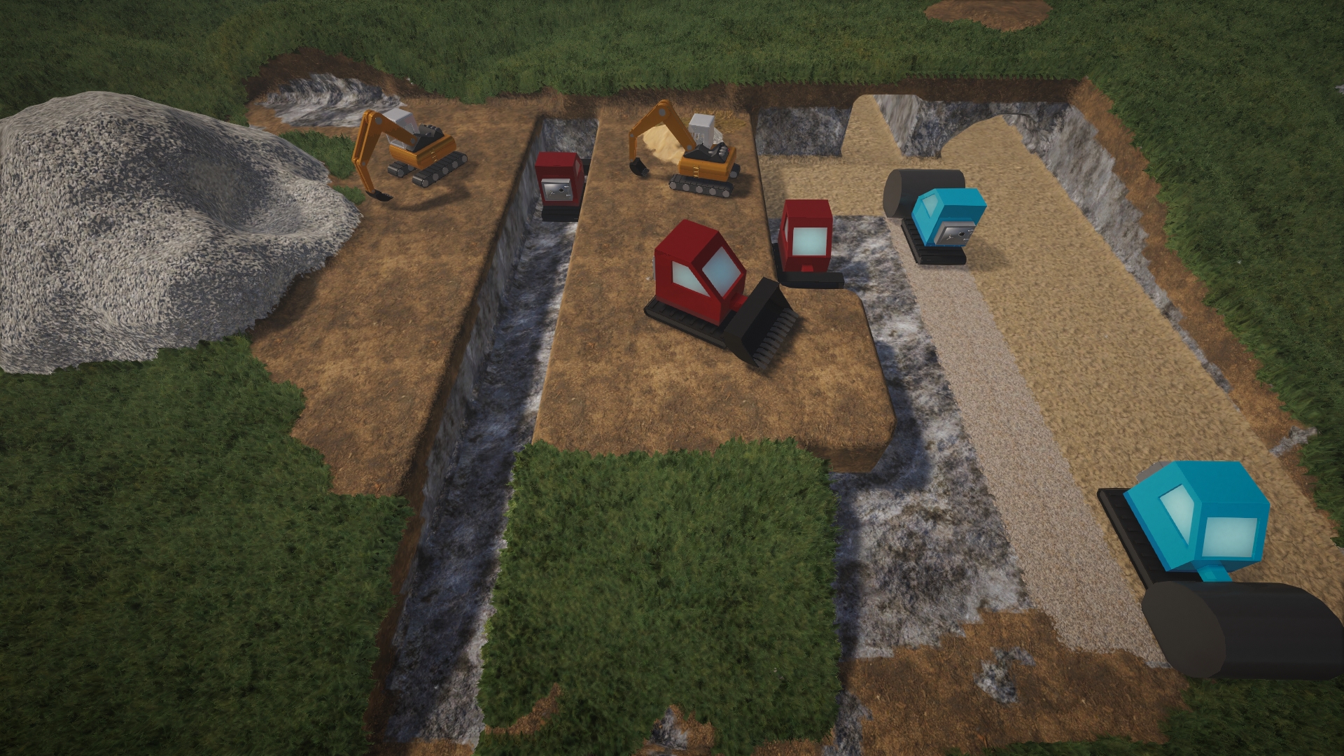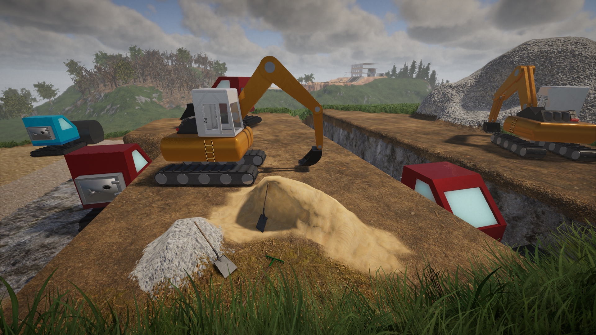 - Die Gelben Bagger sind zum Erschaffen/Aufschichten von Terrain