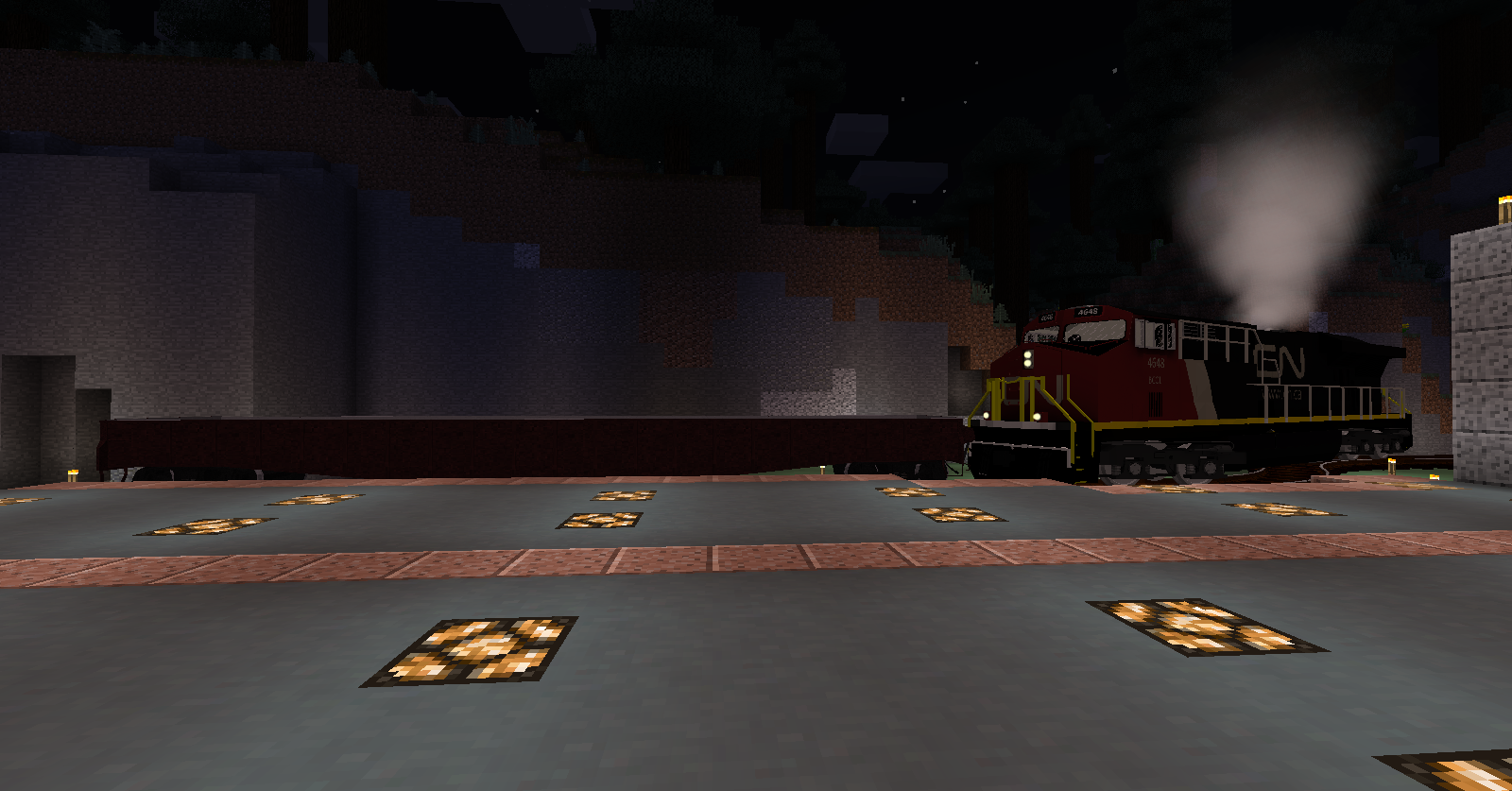 Below - Minecraft's Immersive Railroading with extra modded CN Railway livery: