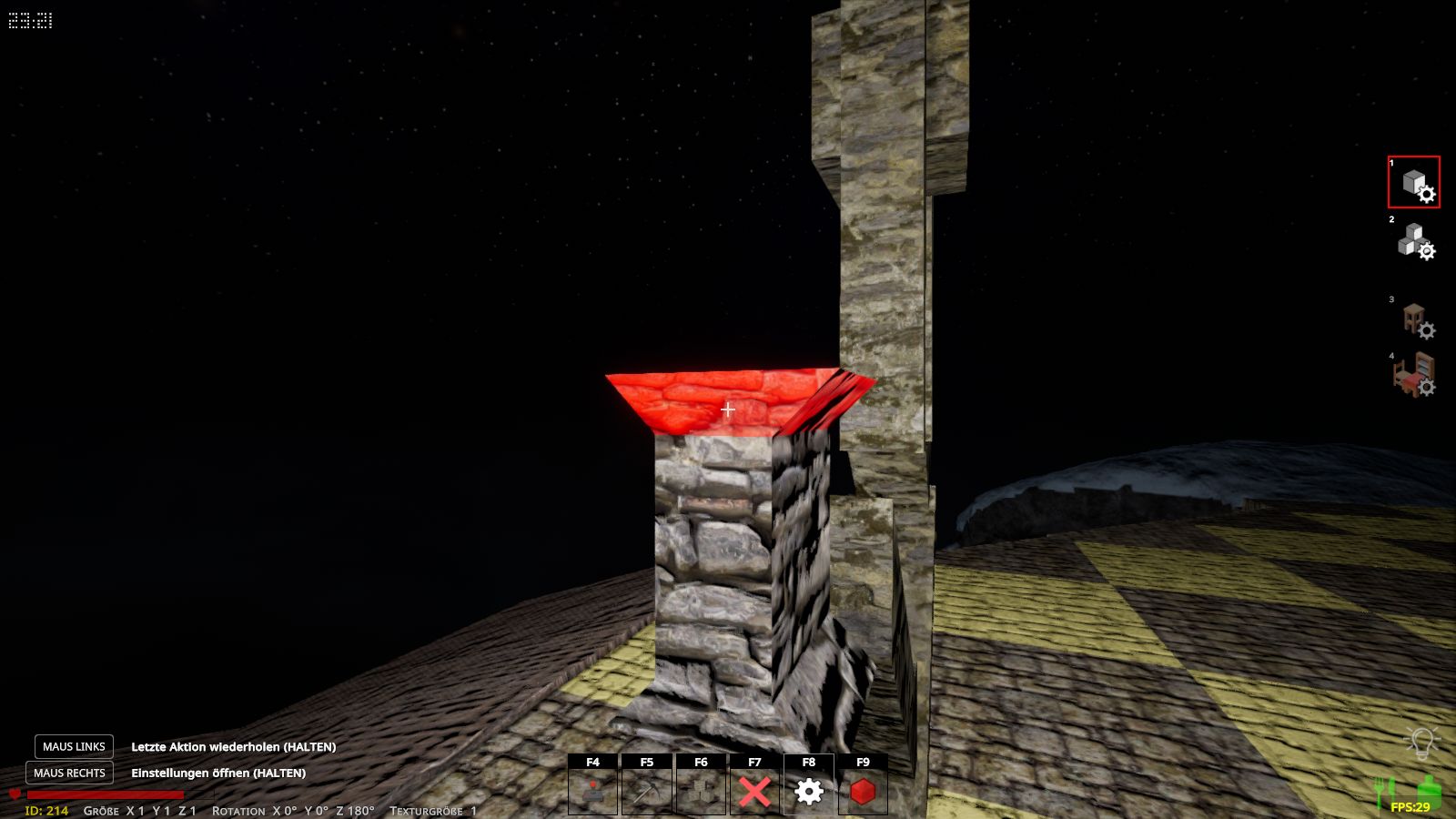 Ich wollte gleich mal ausprobieren, die Zugbrücke an meiner Burg anzubauen, in der Vorschau ließ sie sich auch in Höhe und Breite skalieren, gesetzt wurde sie aber anders und stand mitten in der Öffnung.