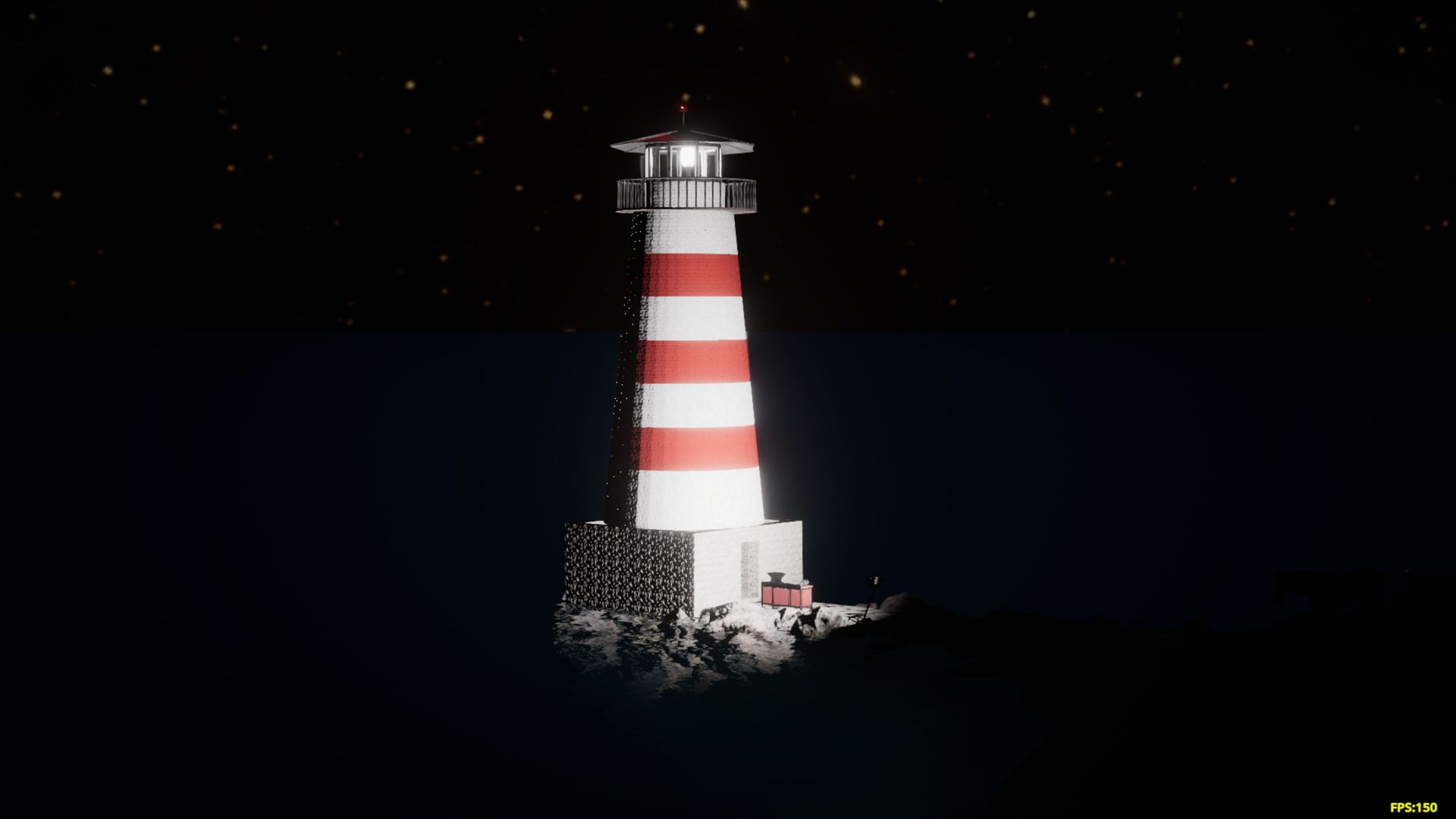 The big light is the rotating lamp inside a luminant sphere. You can turn on both to that you get at least some effect of a real lighthouse. Also the red lamp on top. I had fun making this!