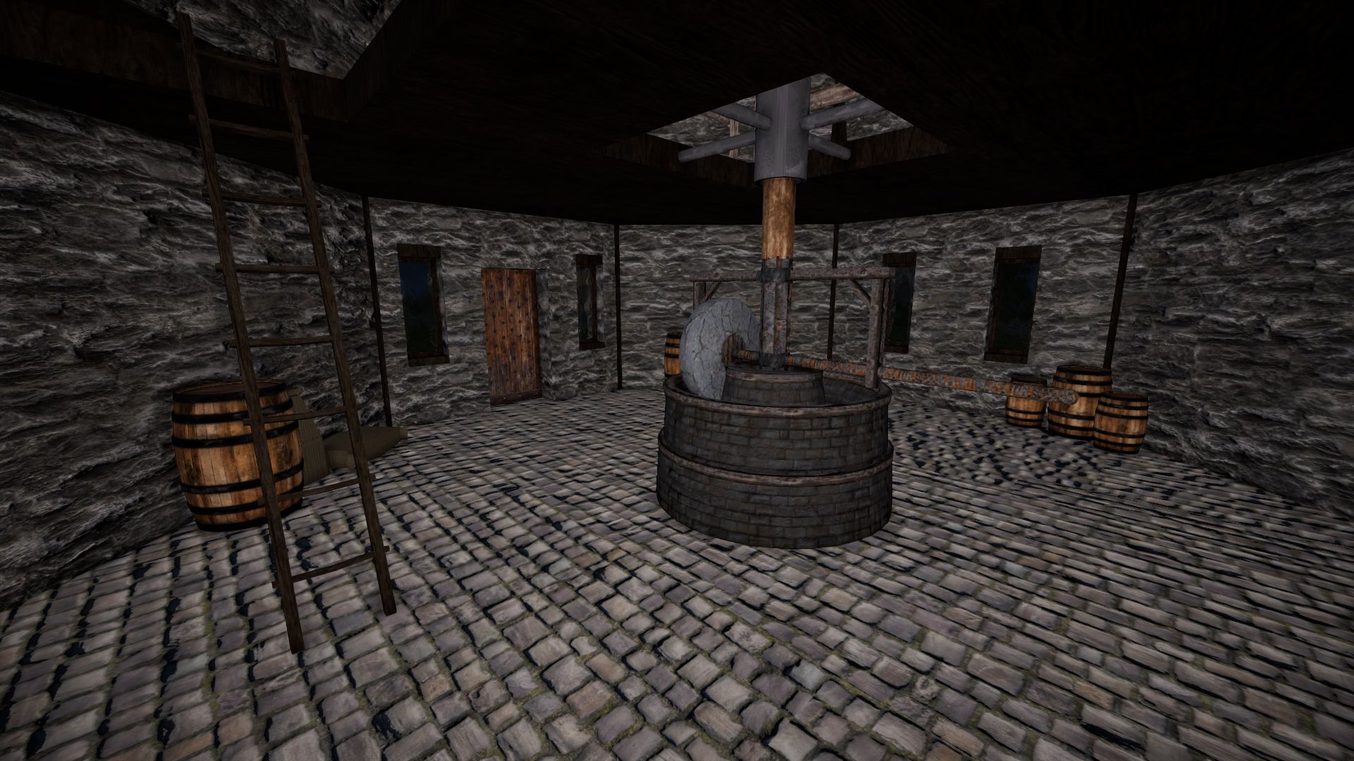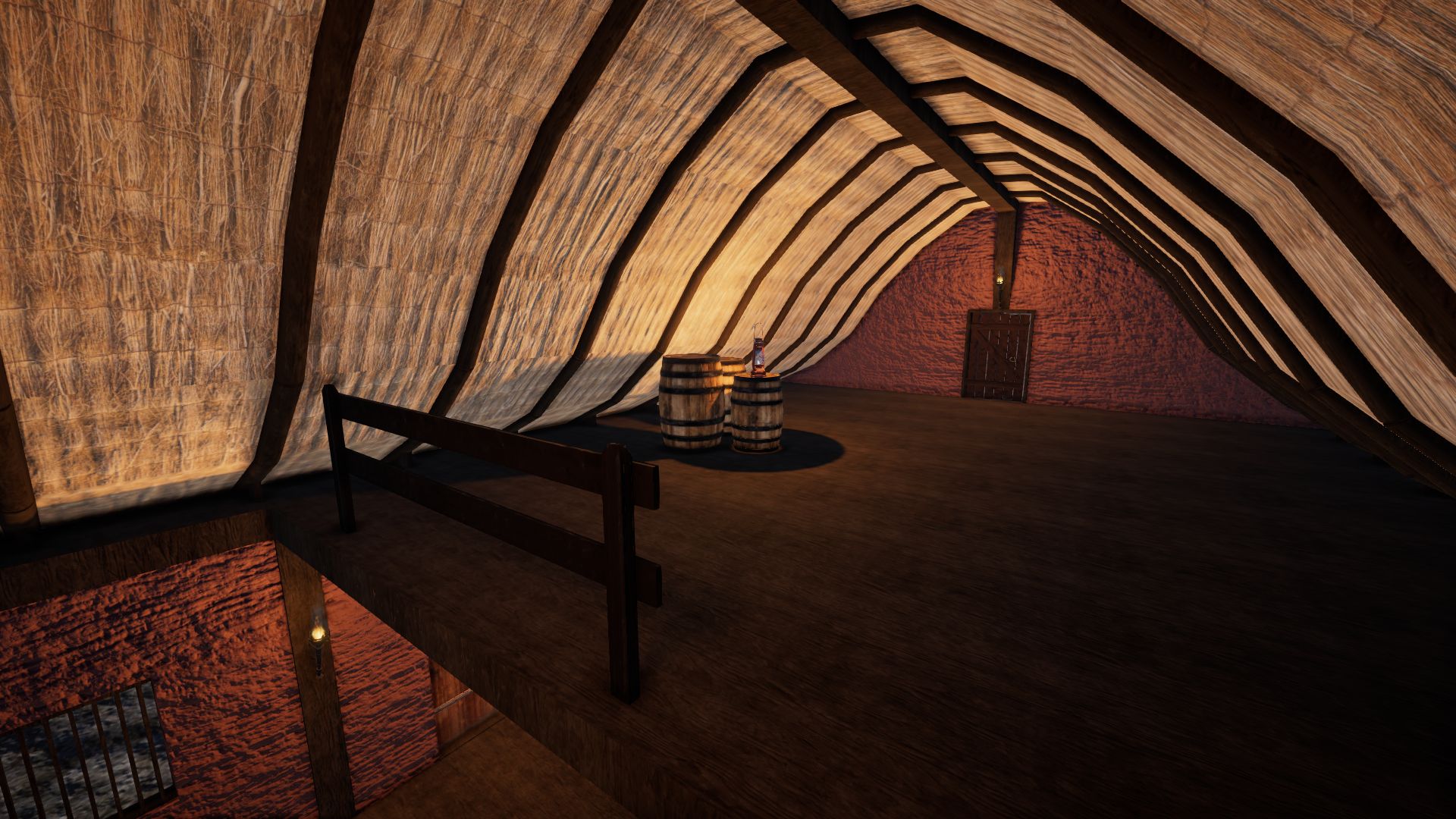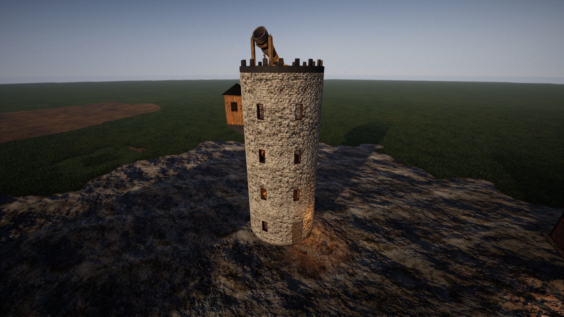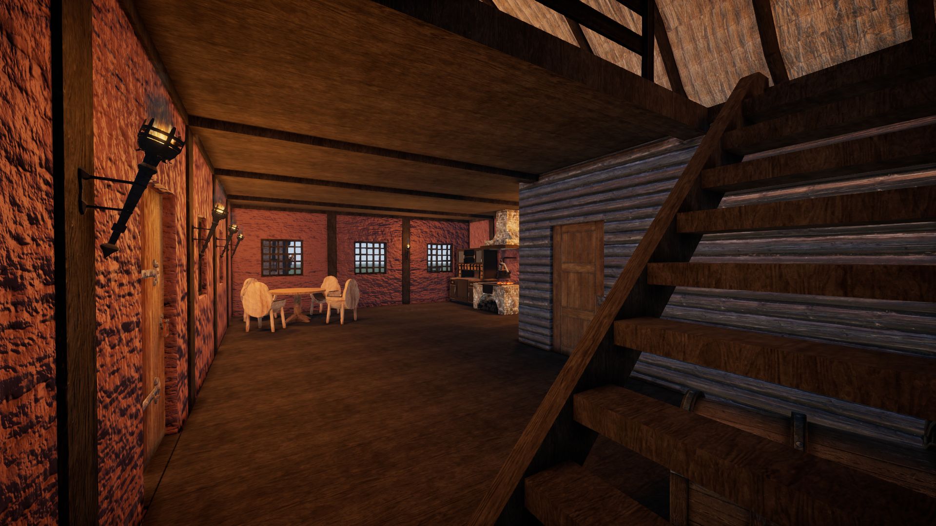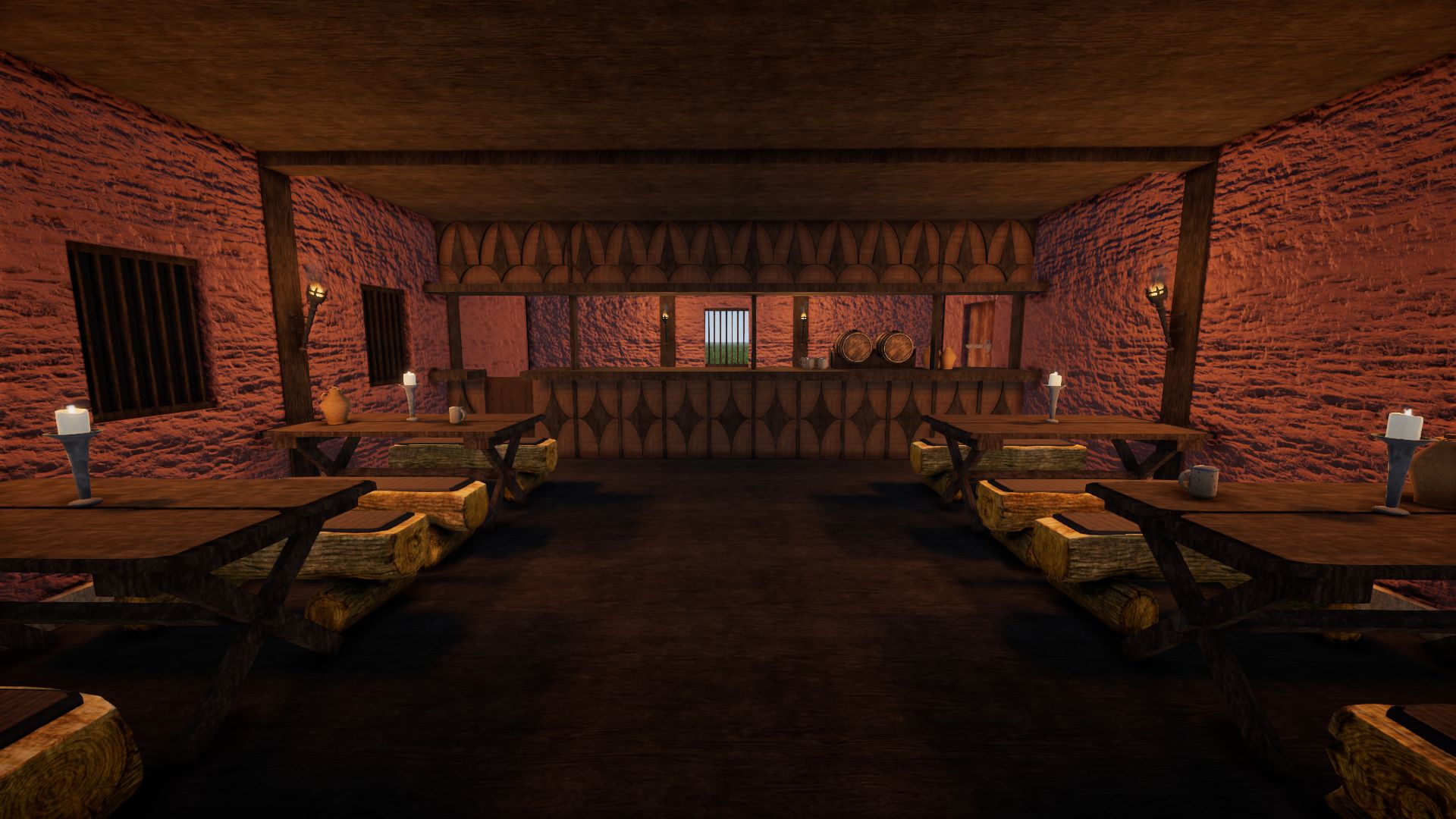 On the ground floor the knights can enjoy a beer after work. The innkeeper lives on the upper floor and there is a storage area on the top floor.
