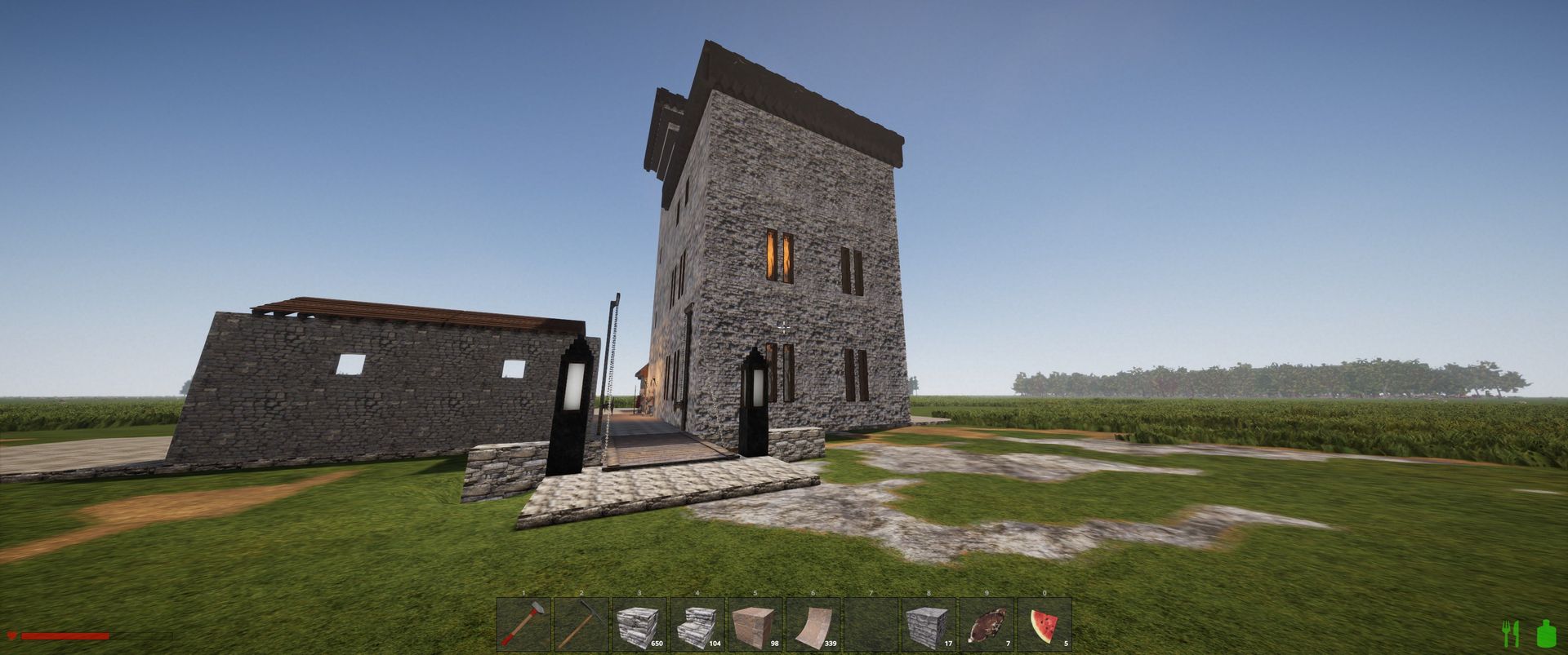 This is the main house of my castle complex with a guard post in front of the door. See pictures for furnishings.