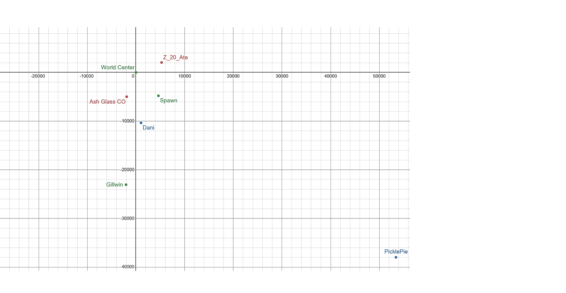 I plotted some player locations(as well as my own) in the server I am a part of. I use Desmos point plotter ![]()